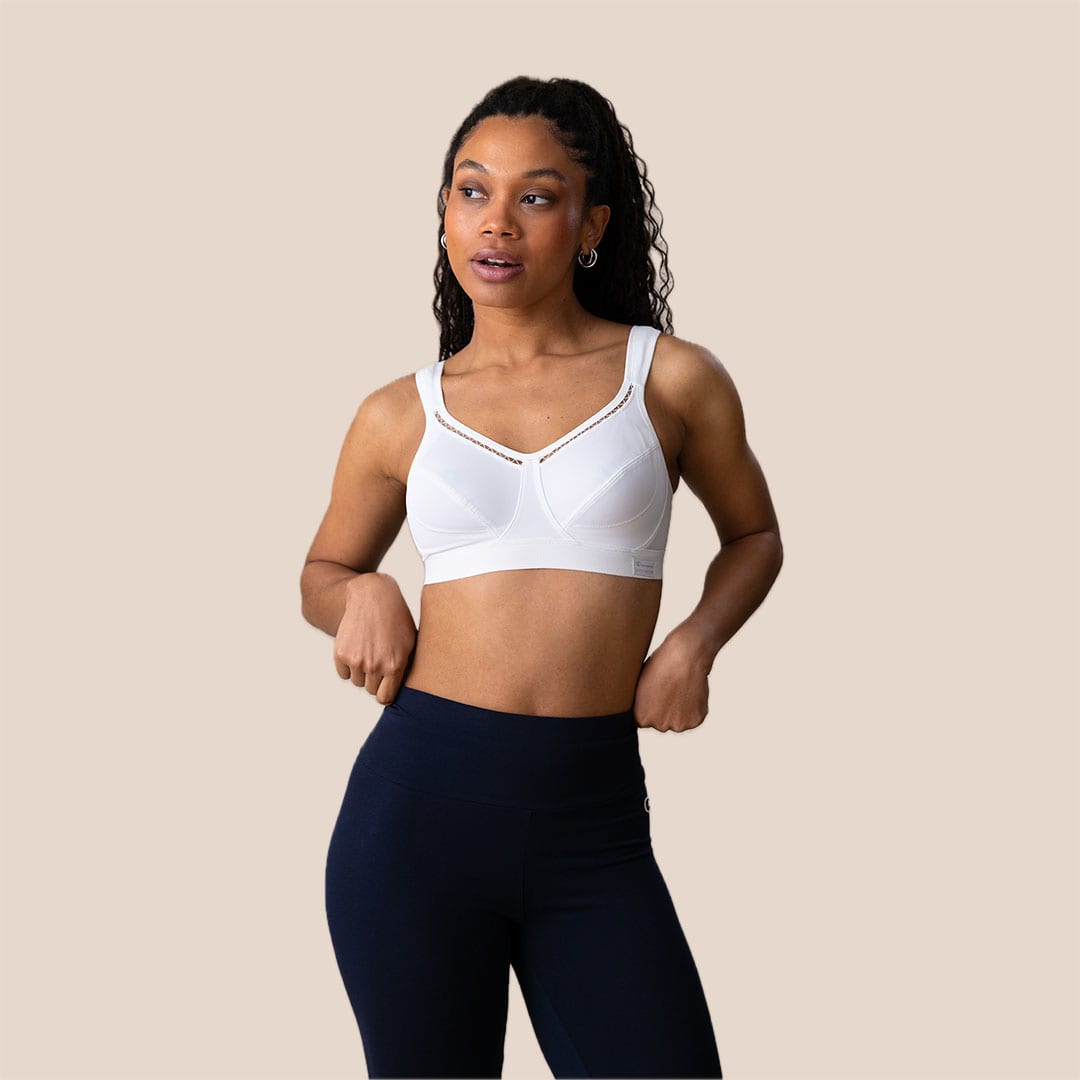 Look and feel fantastic while you're working out in the Active Classic Support Wirefree Sports Bra, which has separated, rounded cups and a chic cut-out trim along the neckline. Design features that make this an exceptionally breathable sports bra include moisture-wicking performance fabrics and mesh-panelled wings, while the soft underband and padded shoulder straps ensure total comfort for any low or medium-impact sport.