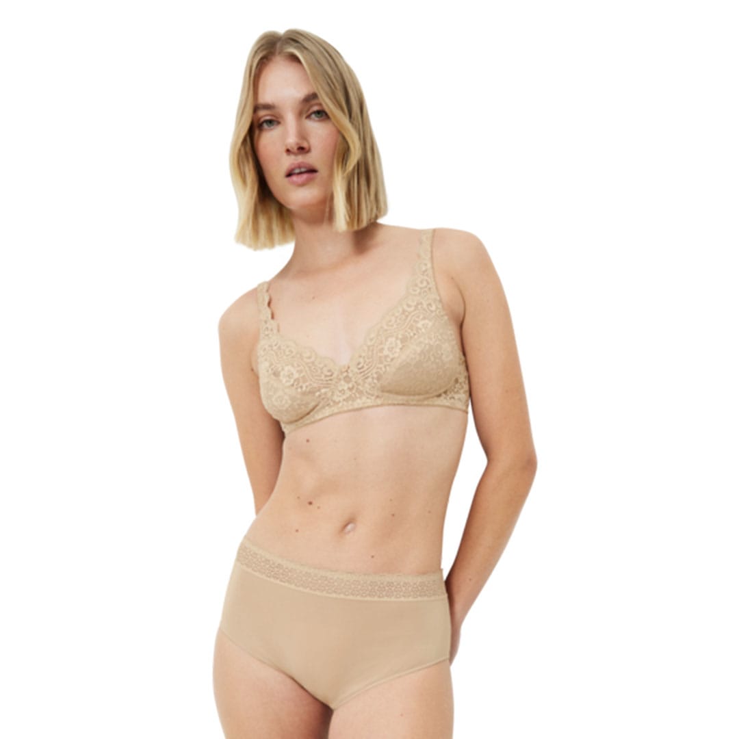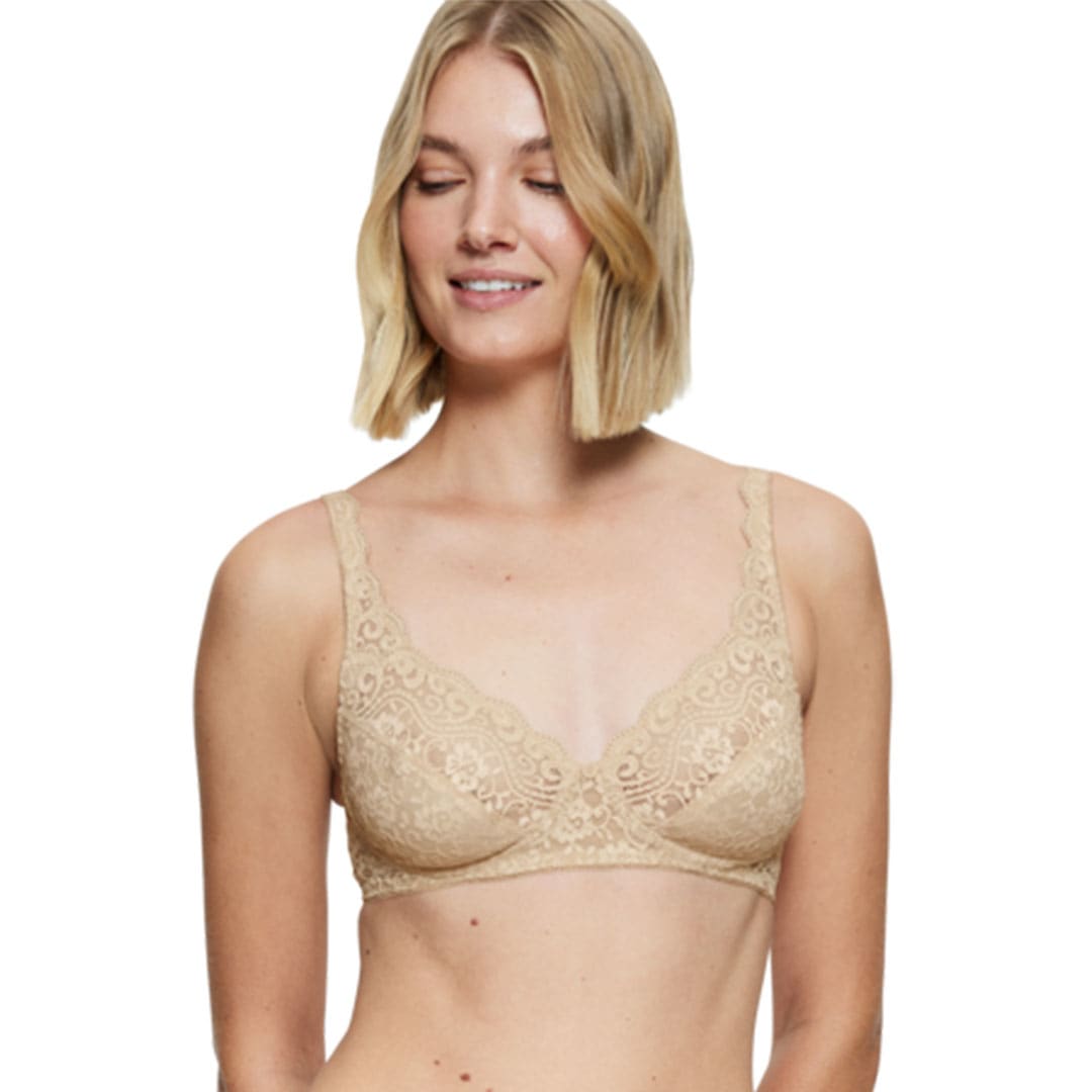 The Amourette Wirefree Bra features new soft Jacquard elastic shoulder straps for a comfortable, modern fit. Designed with smooth wire tape, soft 3-row hook-and-eye fastening, and new V-slides, it offers enhanced comfort and reliable support.