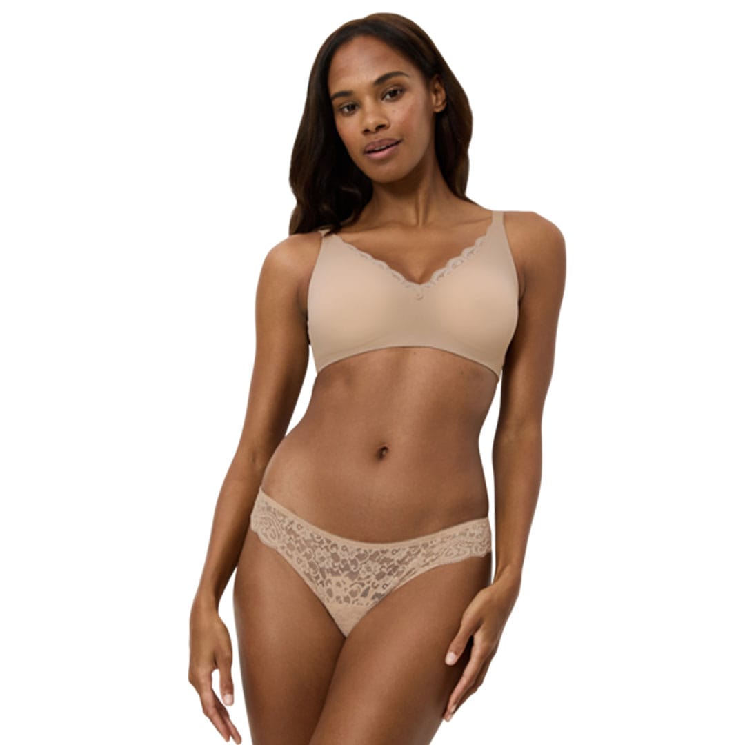 The design of Amourette Wirefree Minimiser Bra visually reduces the bust by up to one cup size while offering a smooth, virtually seamless finish with bonded and laminated parts. Featuring soft new Jacquard elastic shoulder straps, comfortable V-slides, and a gentle 3-row hook-and-eye closure, it delivers all-day support without compromising comfort.
