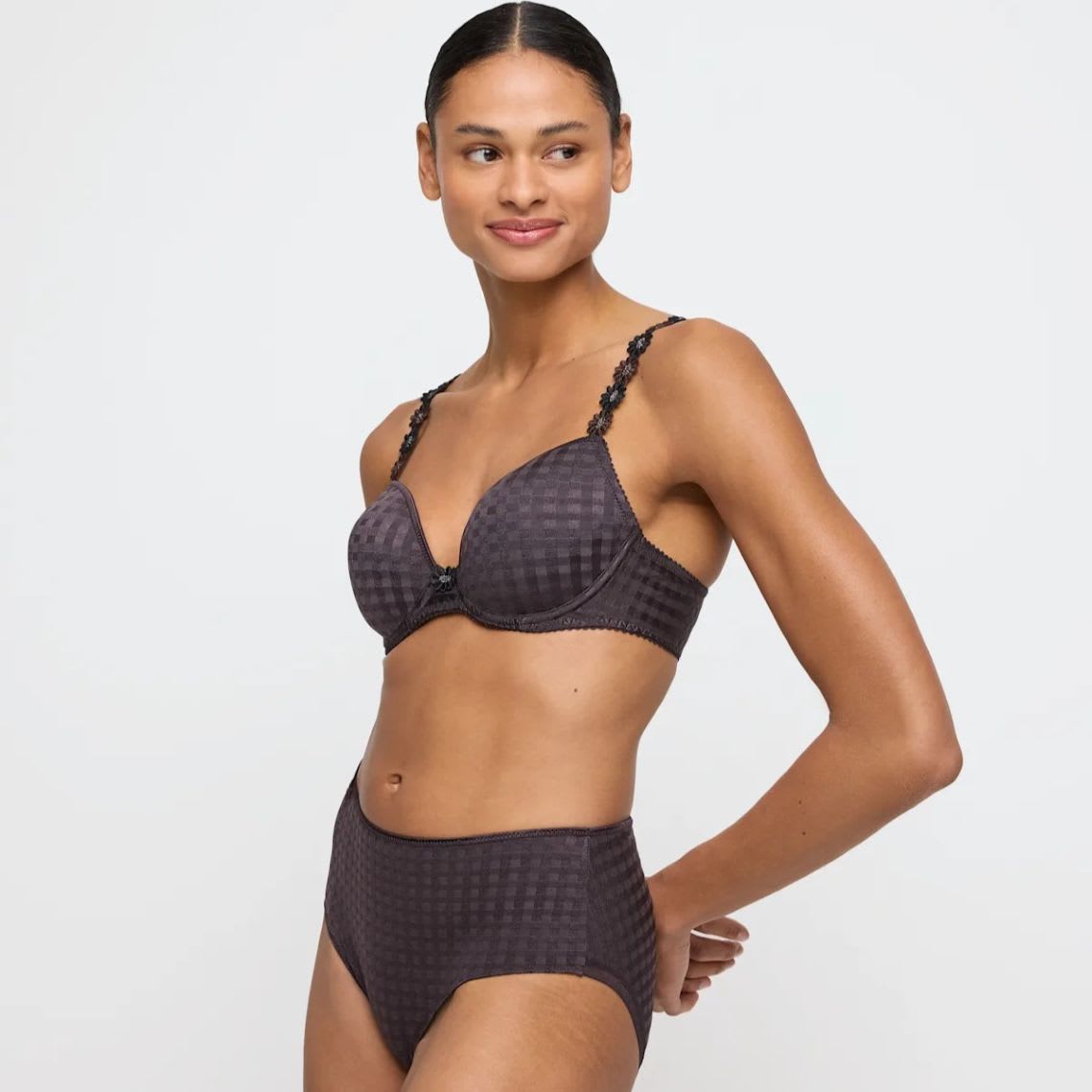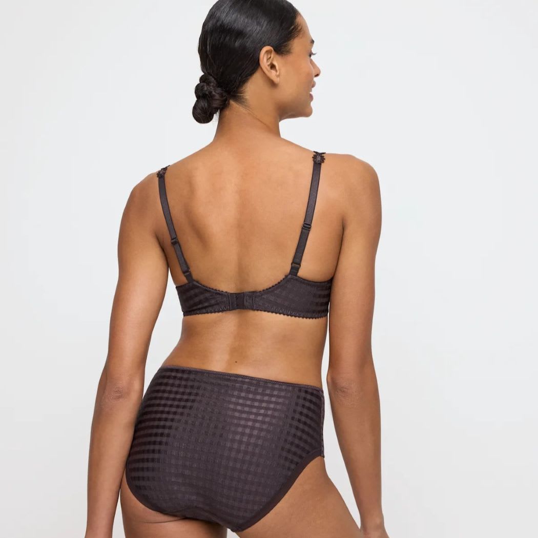 Avero Full Briefs in checked fabric, decorated with a daisy trim. These high waisted opaque briefs cover part of the tummy, creating a smooth silhouette and offer full rear coverage. With no visible lines thanks to the thin strip on the bottom, this piece is perfect for everyday wear.