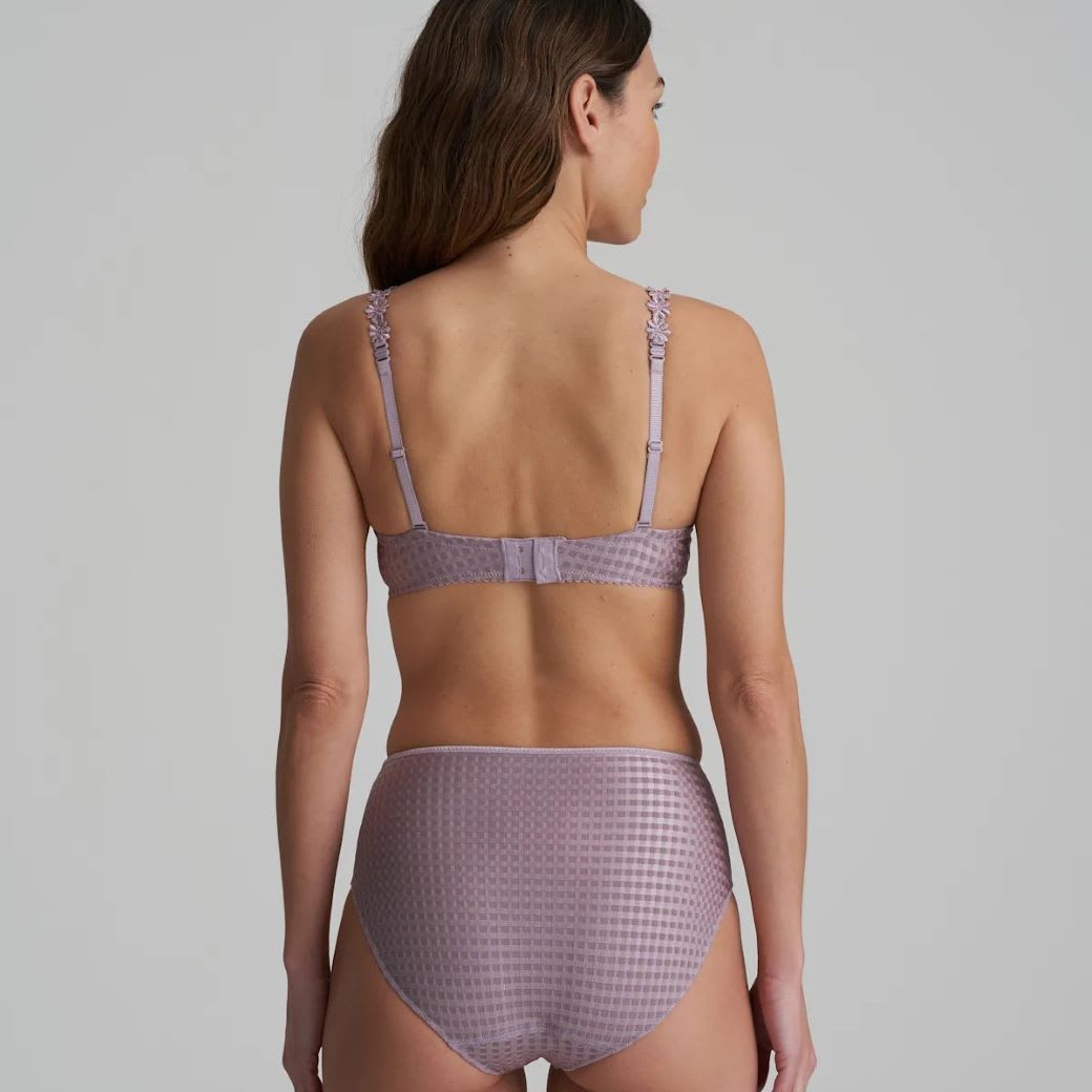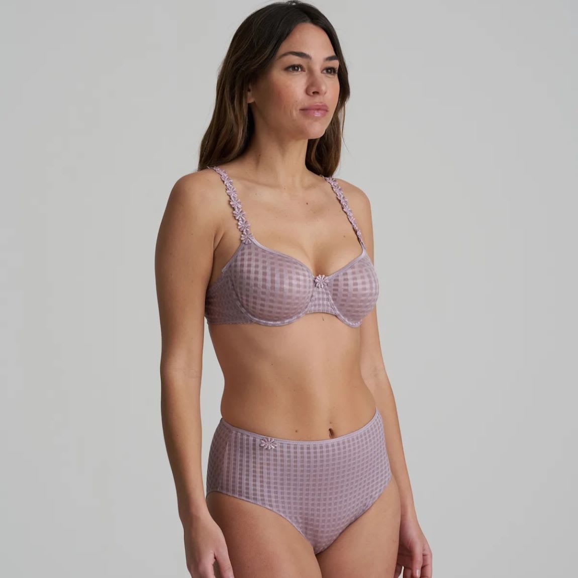 Avero Full Briefs in checked fabric, decorated with a daisy trim. These high waisted opaque briefs cover part of the tummy, creating a smooth silhouette and offer full rear coverage. With no visible lines thanks to the thin strip on the bottom, this piece is perfect for everyday wear.