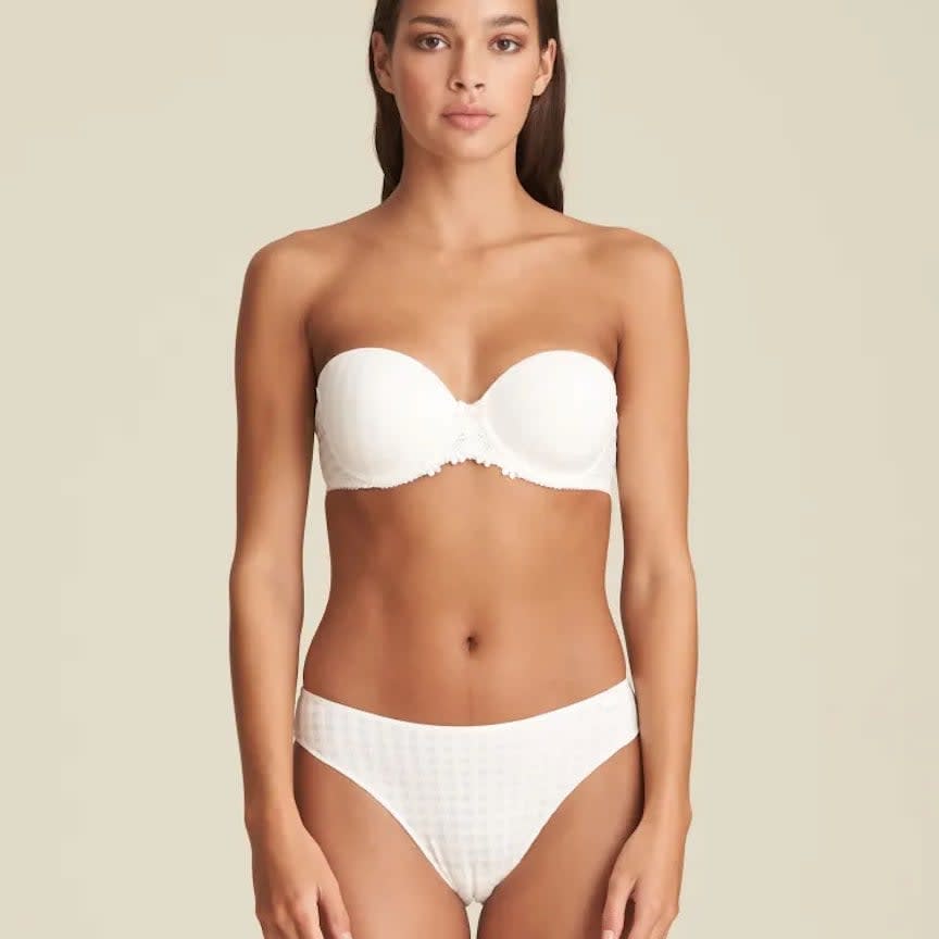 Avero Padded Strapless Bra with smooth padded cups. This strapless bra can also be worn with attachable straps decorated with daisies over the shoulders. The back of the bra has a silicone band to make sure it always stays in place and provides the support you need. Fine lace detailing between the cups and a cute bow add the finishing touches to this feminine design.