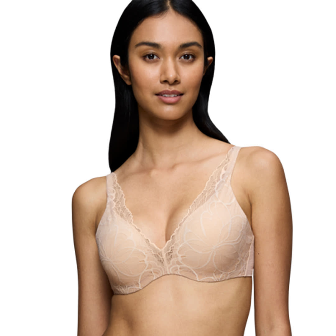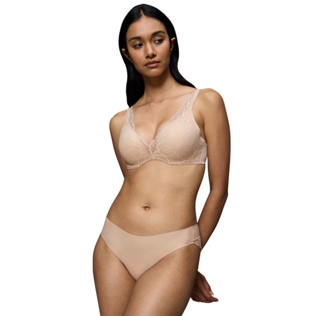 Body Make-Up Illusion Lace is the ultimate decorative foundation for any outfit, offering delicate support with the illusion of wearing nothing at all. This wired padded bra features a deep cleavage, flexible lightweight wires, foam cups with vanishing edges, integrated cushions for customised lift and centralisation, and a luxurious combination of smooth lace and creamy soft-touch microfibre with an embossed brand logo.