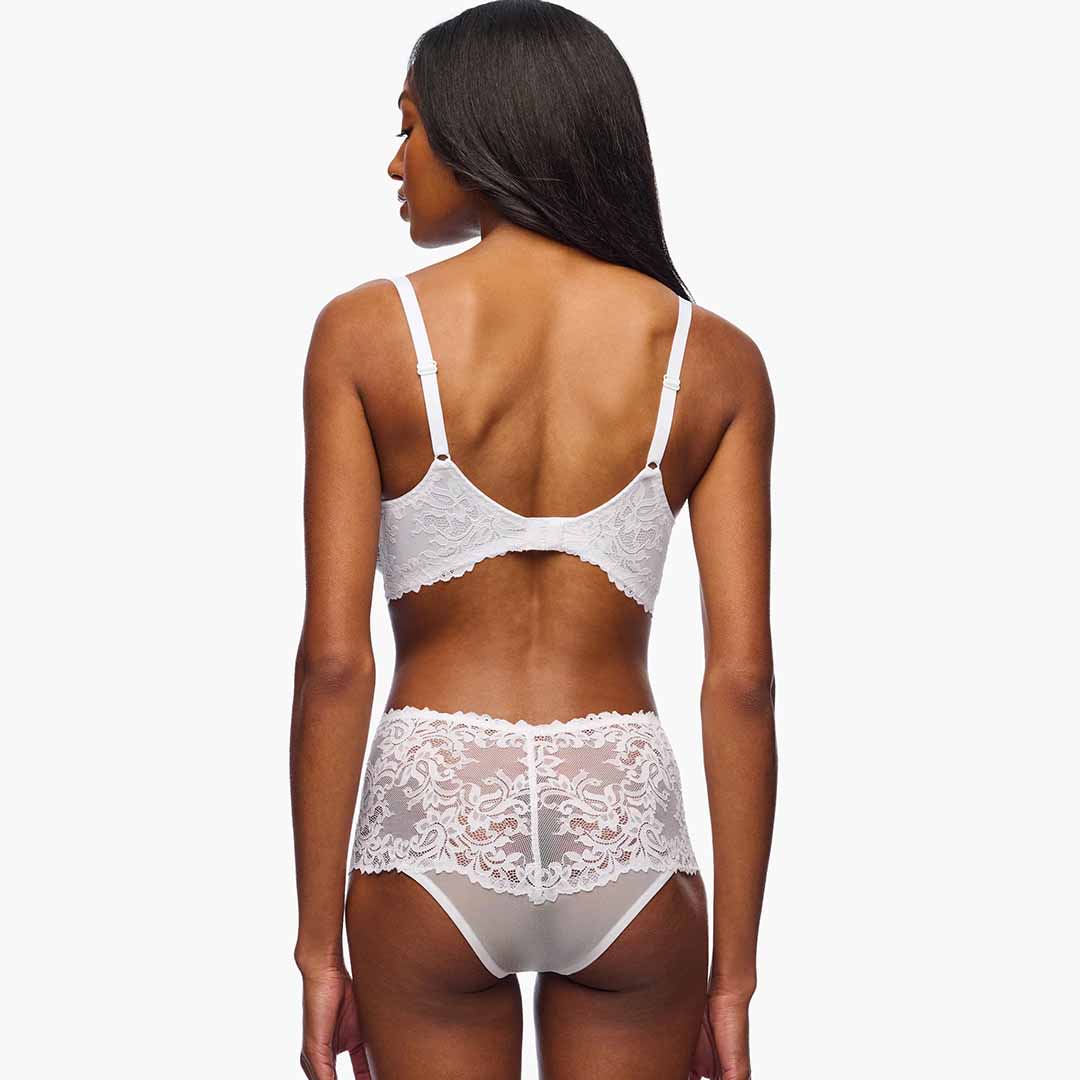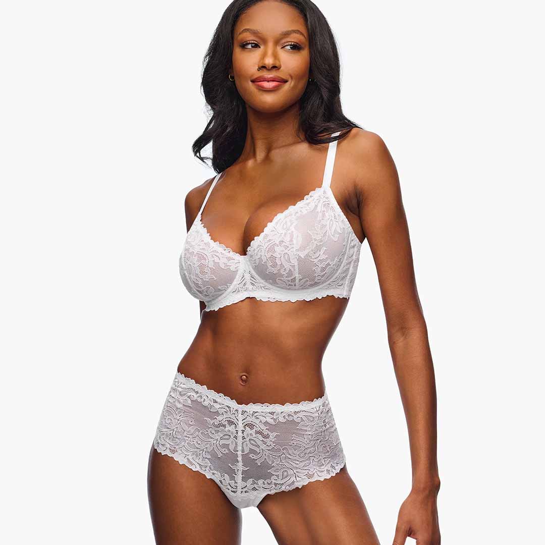 A seamless hotpant style designed to lay flat under clothing for a smooth, invisible finish. Carmela Hotpants features wide stretch lace panels at the sides for a feminine touch and cheeky rear coverage. Finished with a cotton-lined gusset for comfort. Hand wash in cold water and hang to dry.