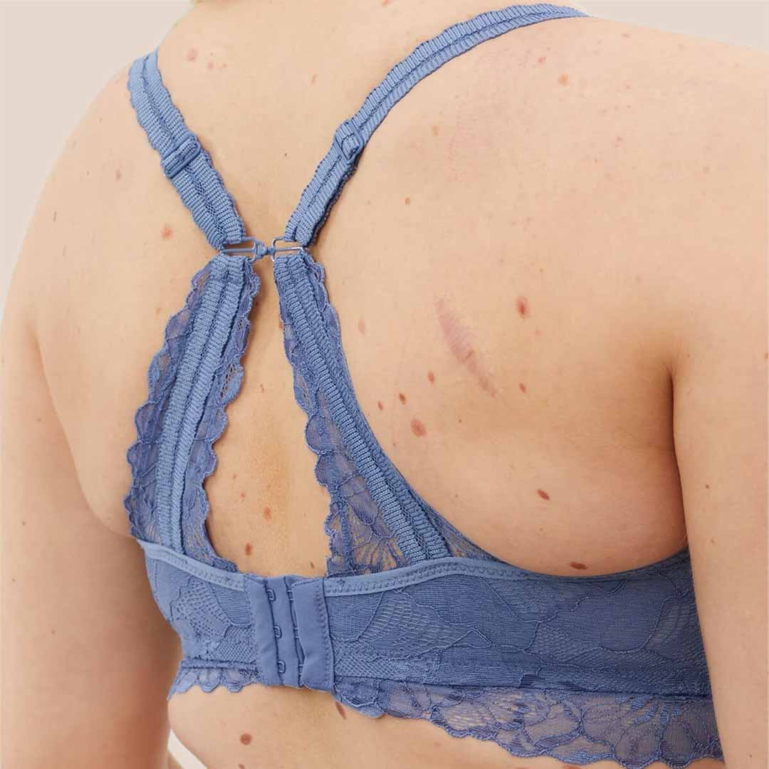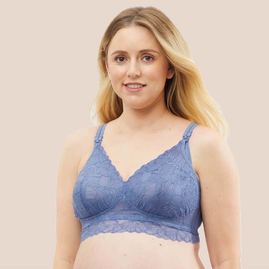 A wire-free Chantilly D-F Maternity & Nursing Bralette featuring soft French-inspired lace, easy drop-down cups, and flexible, supportive design for comfort and growth during motherhood.