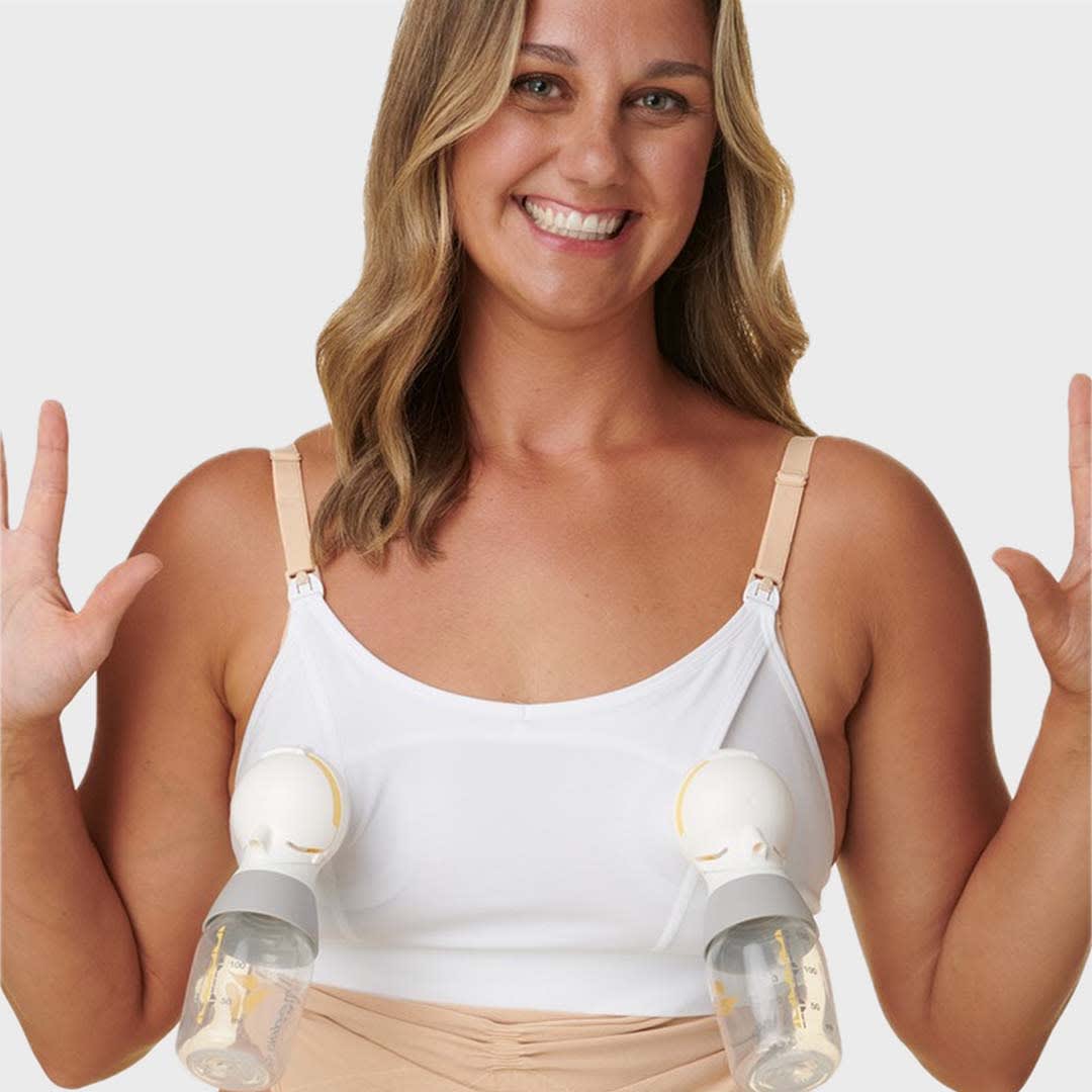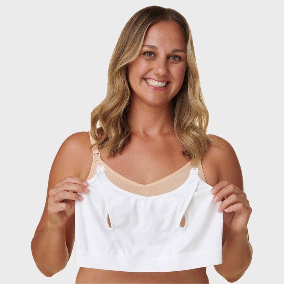 Make hands-free pumping effortless with this soft and practical pumping bra accessory from the Basics by Bravado Designs collection. Clip and Go Hands-Free Pumping Bra Accessory is crafted from a gentle cotton-modal blend, its patented design securely attaches to Bravado’s nursing clips, holding bottles upright for easy one-handed use—and even allows you to pump and breastfeed simultaneously.