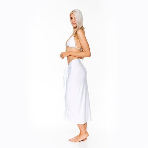 The Coconut Chill Maxi Skarong is a must-have for relaxed, sun-soaked days at the beach or by the pool. Crafted from soft, easy-care, quick-drying fabric, it can be slipped on straight after a swim. The classic white shade looks effortlessly chic styled as a sarong over a bikini or transformed into various top styles, making it a versatile holiday essential.