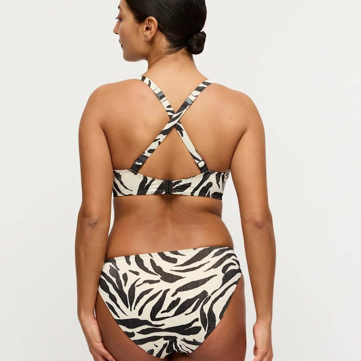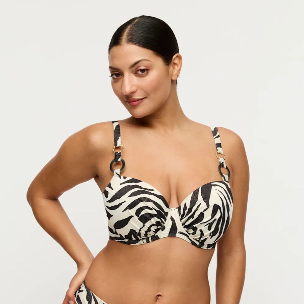 Poolside glam was never this comfy. Pure luxury! Seductive balcony top featuring padded cups for ultimate comfort. Cool print with a glitter effect.