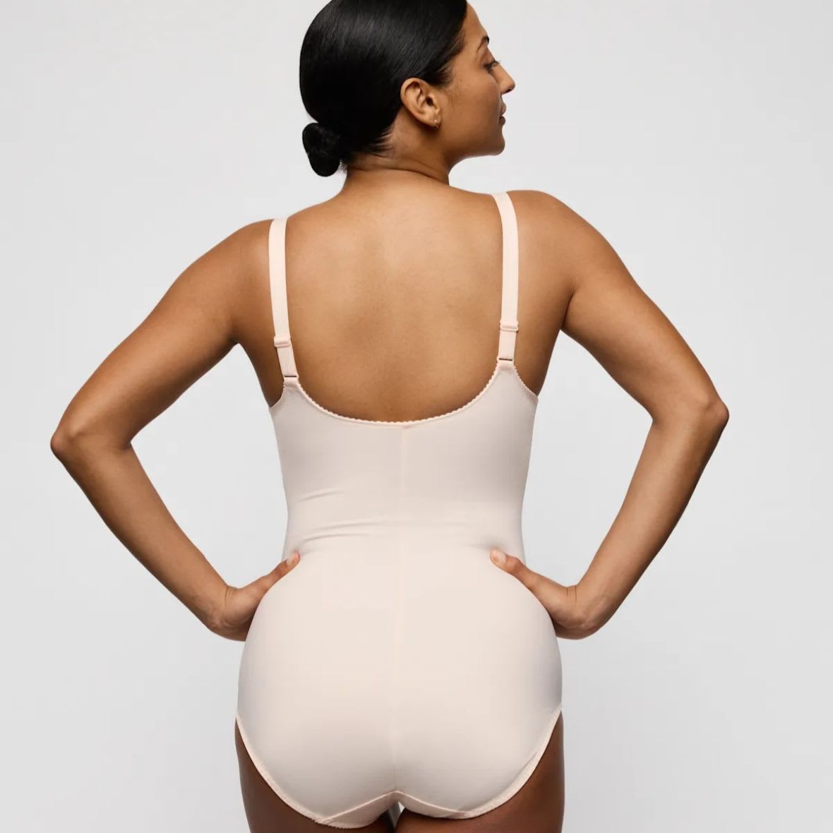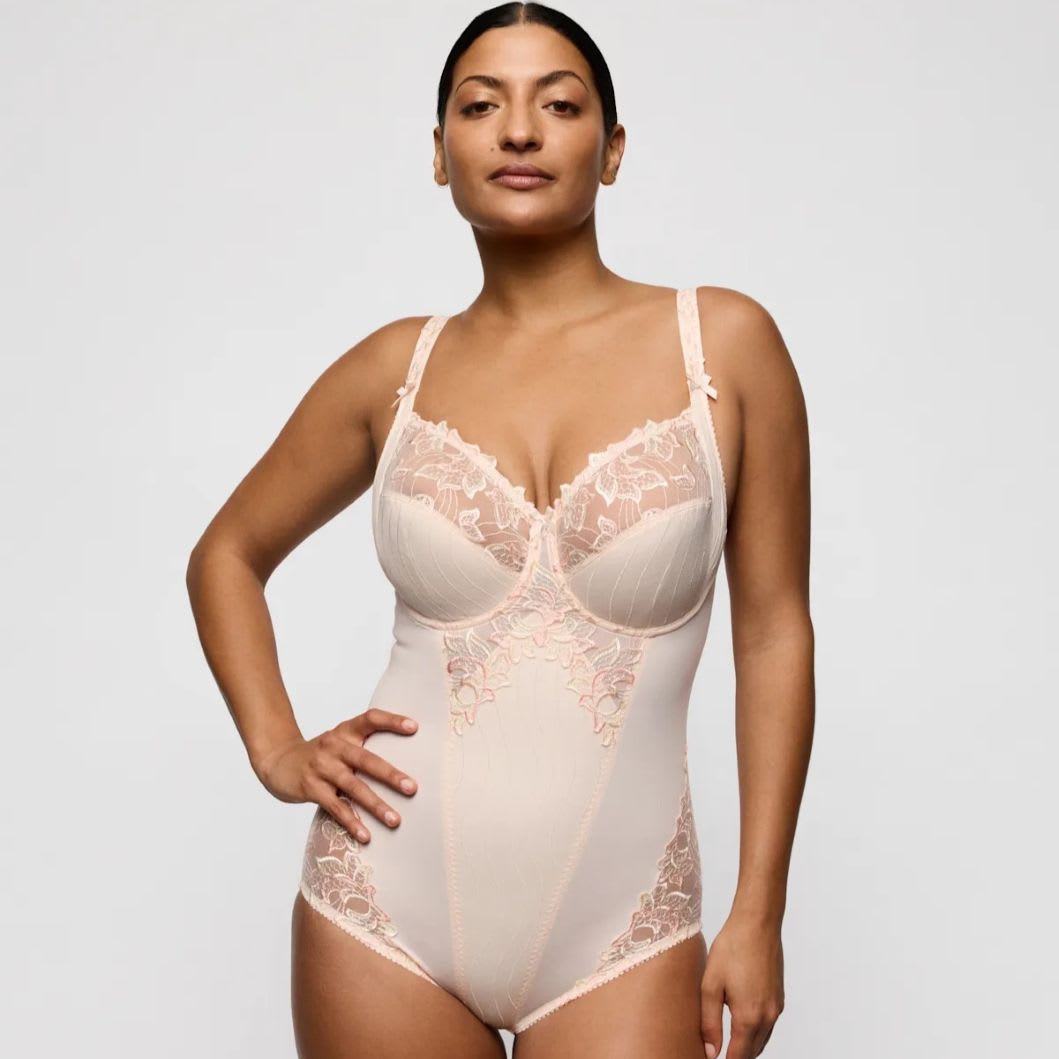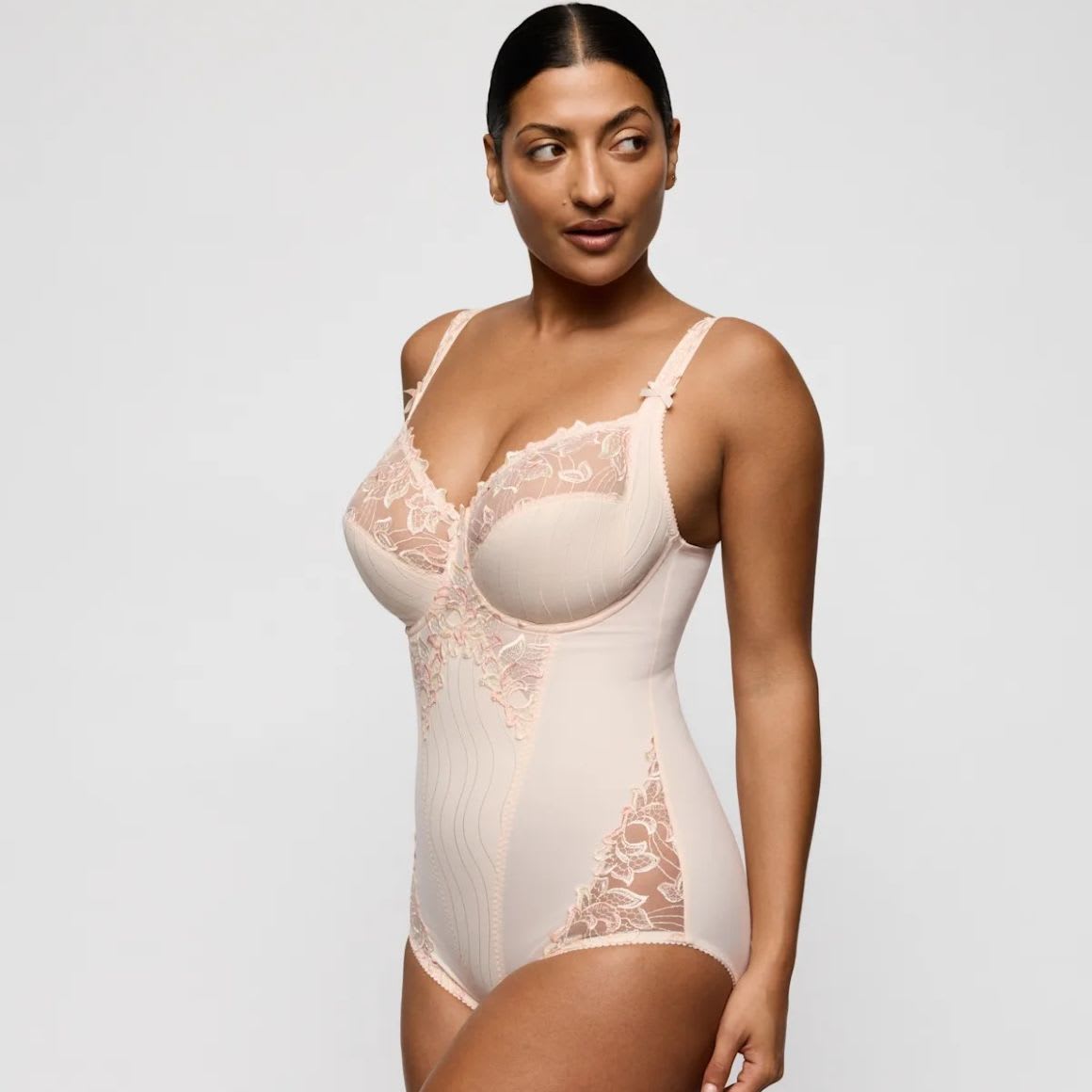 Deauville Bodysuit is luxurious figure-fixing bodysuit with three-section wire bra, finished with glossy embroidery on cups, straps, leg openings and front section