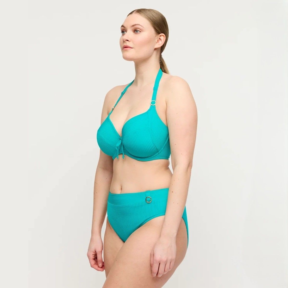 Trendy ribbed look with sun-catching details. Full cup top that lifts your bosom with confidence.