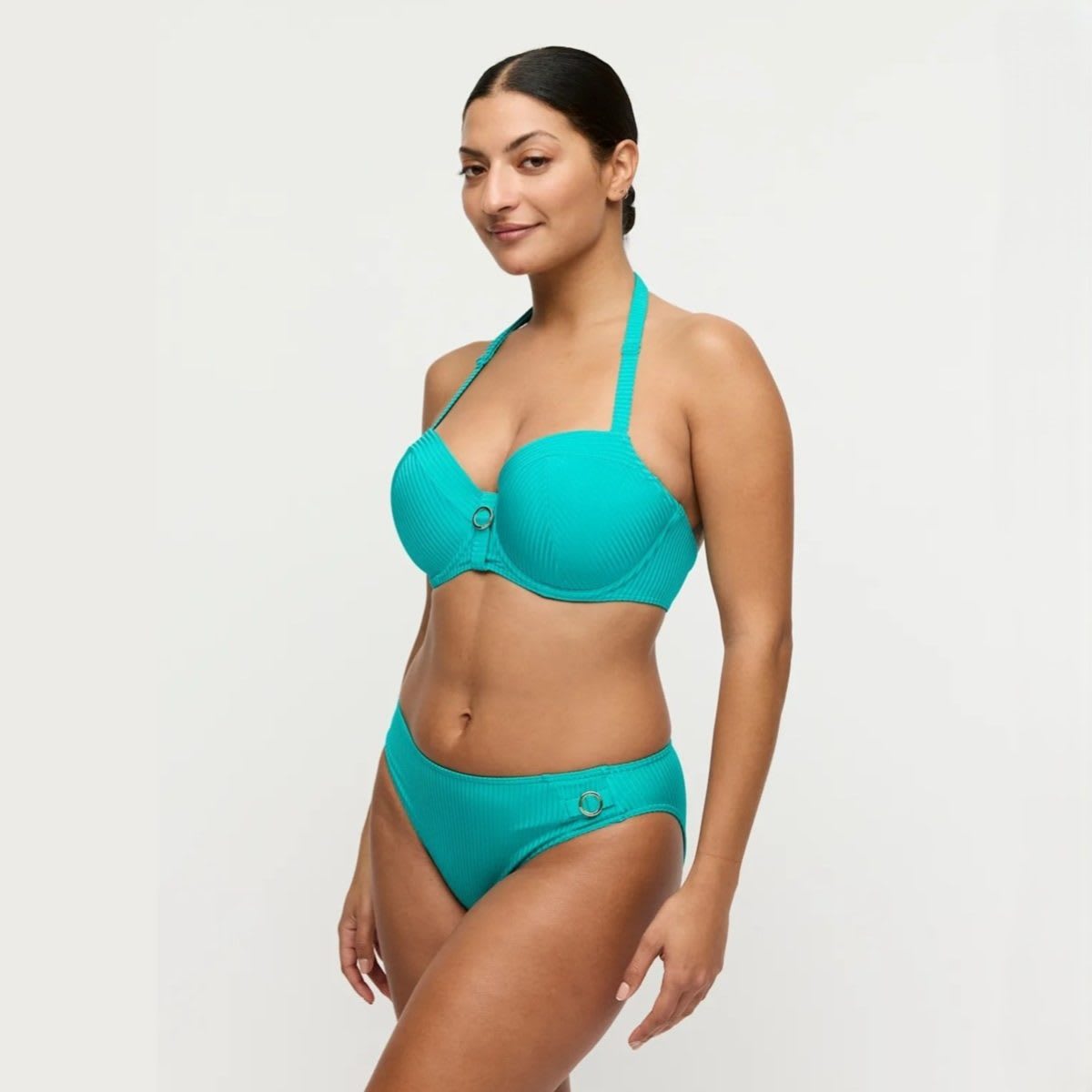 Trendy ribbed look with sun-catching details. Seductive balcony top featuring padded cups for ultimate comfort.