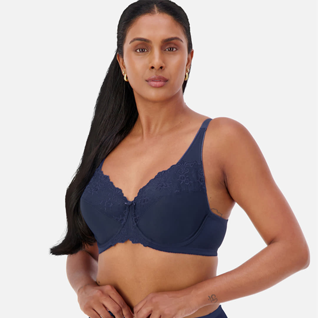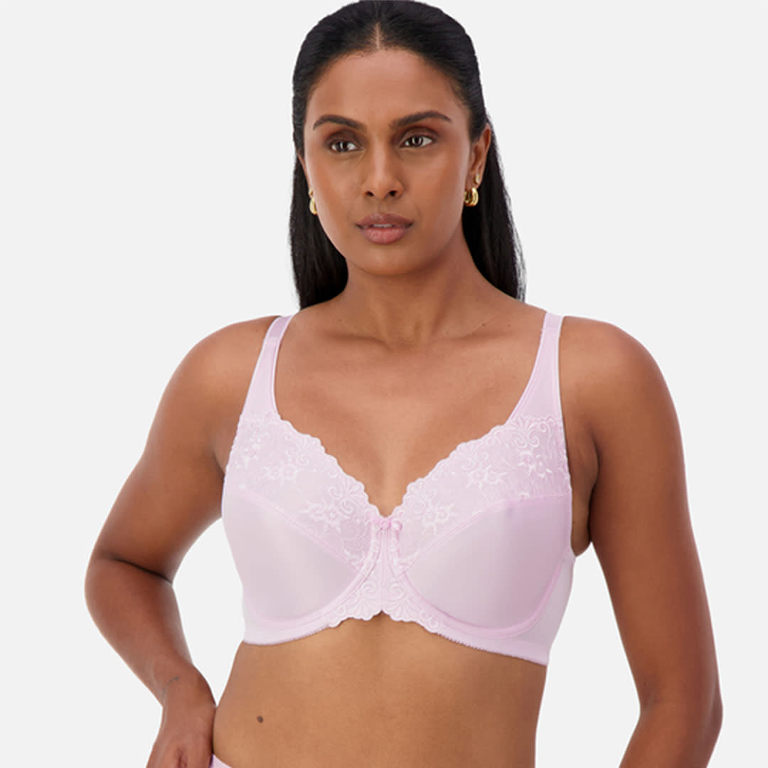 The popular Embroidered Minimiser Bra comes in a great-value 2-pack featuring complementary colours. Designed to reduce the bust appearance by up to one cup size, it offers firm support, elegant embroidery, and wide straps for all-day comfort and a smooth look under clothing.