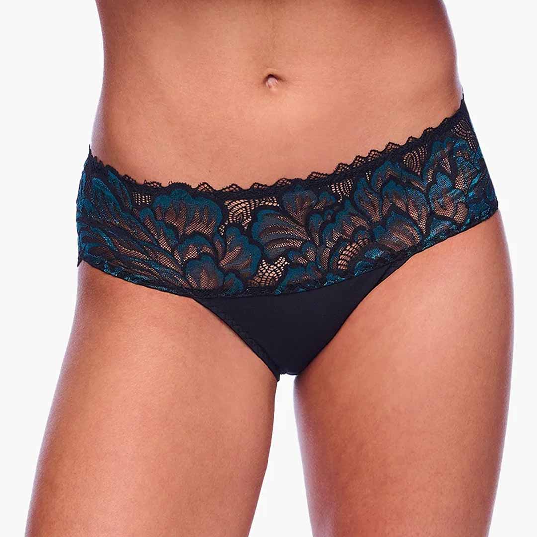 Encantata Cheeky Brief is a bikini style crafted from two-tone Italian lace with delicate shimmer embroidery. Designed with soft stretch for a smooth, flexible fit and a mid-rise silhouette offering cheeky back coverage. Finished with a cotton-lined gusset for everyday comfort. Hand wash only; do not tumble dry.