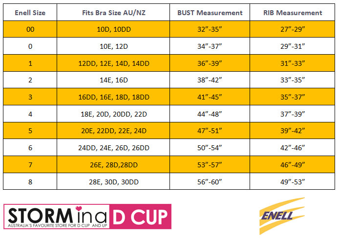 The ENELL sports bra is one of those bras that has Raving Fans and for good reason. It’s amazing – but don’t take my word for it...ENELLs biggest fans include Oprah Winfrey AND plus-sized supermodel Ashley Graham (who had a barbie doll modelled after her, I know, wow). It doesn’t look or fit like any other sports bra and it has its own unique size system. Please look at the chart image to determine your size.