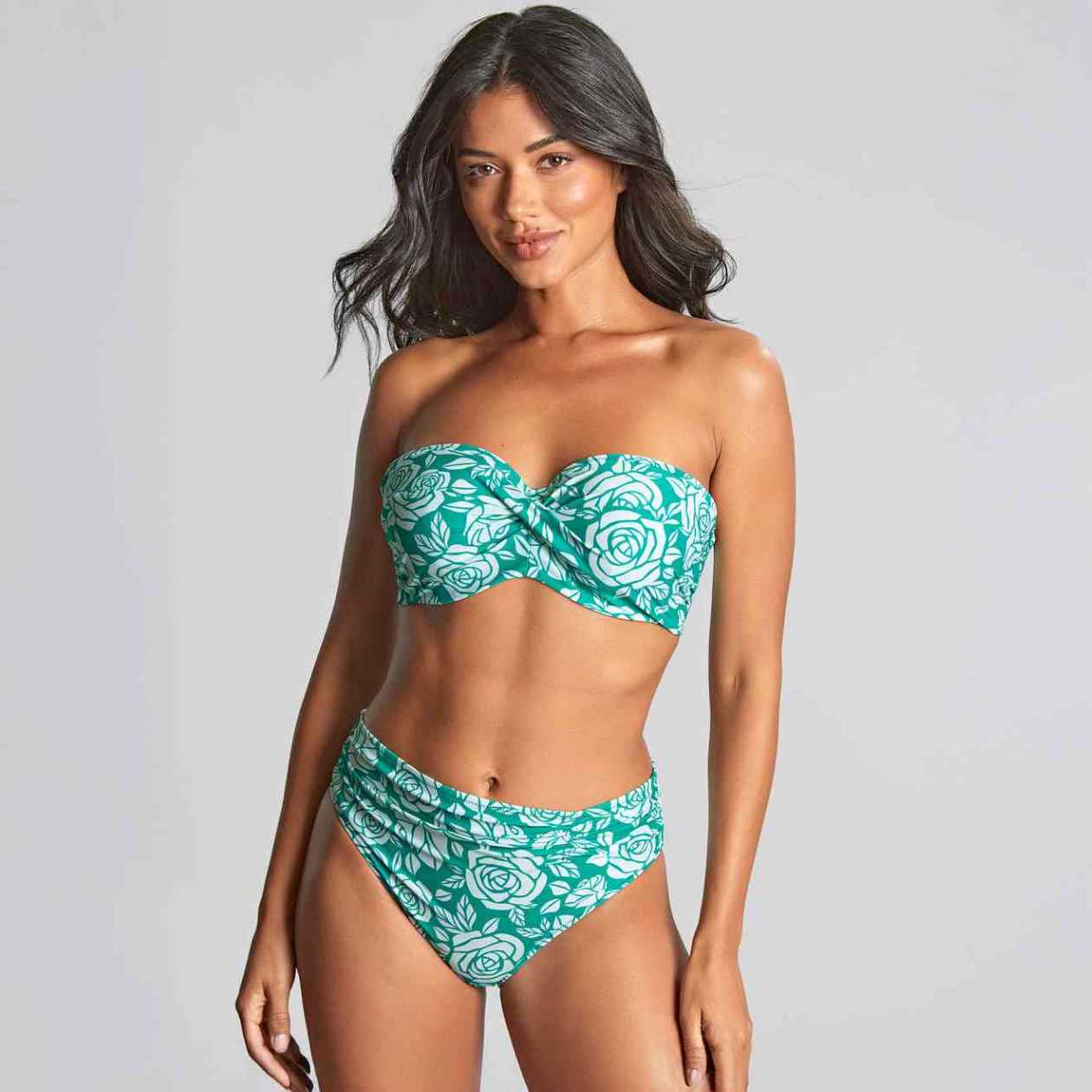 Complete your glamorous poolside look with the English Rose Midi Bikini Brief, the perfect coordinate for the Ella Twist Bandeau Bikini Top. These Midi Gathered Bikini Bottoms feature our exclusive English rose print, combining a flattering, classic shape with a touch of sophistication. Designed for both style and comfort, they offer a secure fit that ensures you feel confident and elegant throughout your holiday.