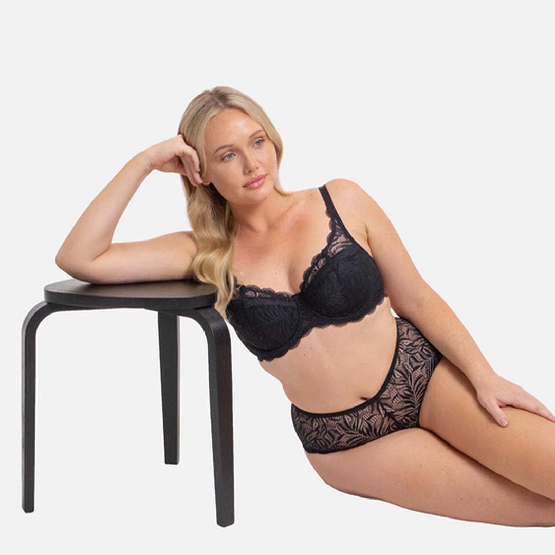 The padded Essential Lace Underwire Balcony Bra features a three-piece cup for a beautifully rounded shape, wide lace straps at the front, adjustable back straps, and fully lined cups and back panel for enhanced support and comfort. Pair with the Essential Lace Maxi Brief to complete the perfect set.