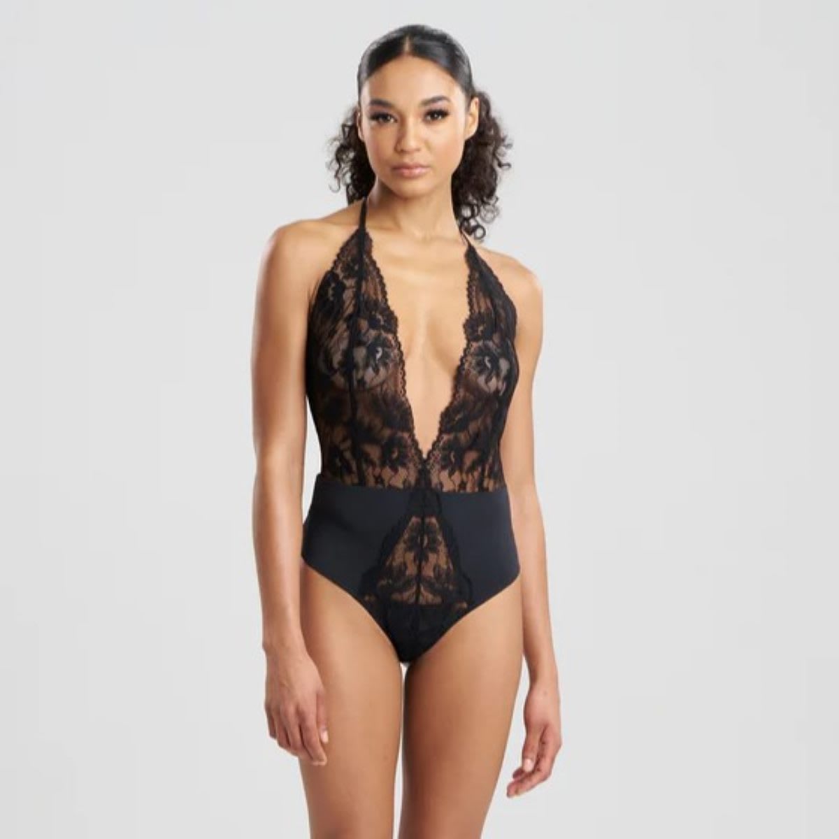 Captivating and feminine, this romantic lace teddy features a plunging neckline, cheeky thong back, and a stunning mix of soft stretch jersey and floral scalloped lace. The adjustable ruched halter and back straps contour beautifully to your shape, creating a flawless, personalised fit. Made with OEKO-TEX® Standard 100 certified materials, it’s as comfortable as it is alluring.