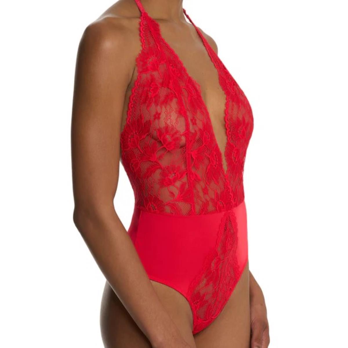Captivating and feminine, this romantic lace teddy features a plunging neckline, cheeky thong back, and a stunning mix of soft stretch jersey and floral scalloped lace. The adjustable ruched halter and back straps contour beautifully to your shape, creating a flawless, personalised fit. Made with OEKO-TEX® Standard 100 certified materials, it’s as comfortable as it is alluring.