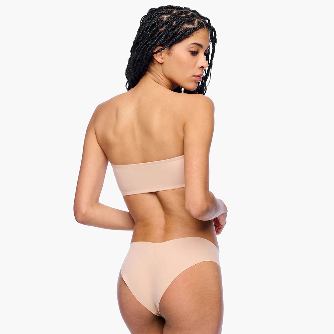 Free Cut Bandeau is a wireless bra crafted from free-cut, lightweight microfiber for a seamless, comfortable feel. Designed with non-padded cups that offer a smooth, supportive fit. Features a pull-on style with side boning for extra structure, plus silicone grips along the top and bottom edges to keep it securely in place.