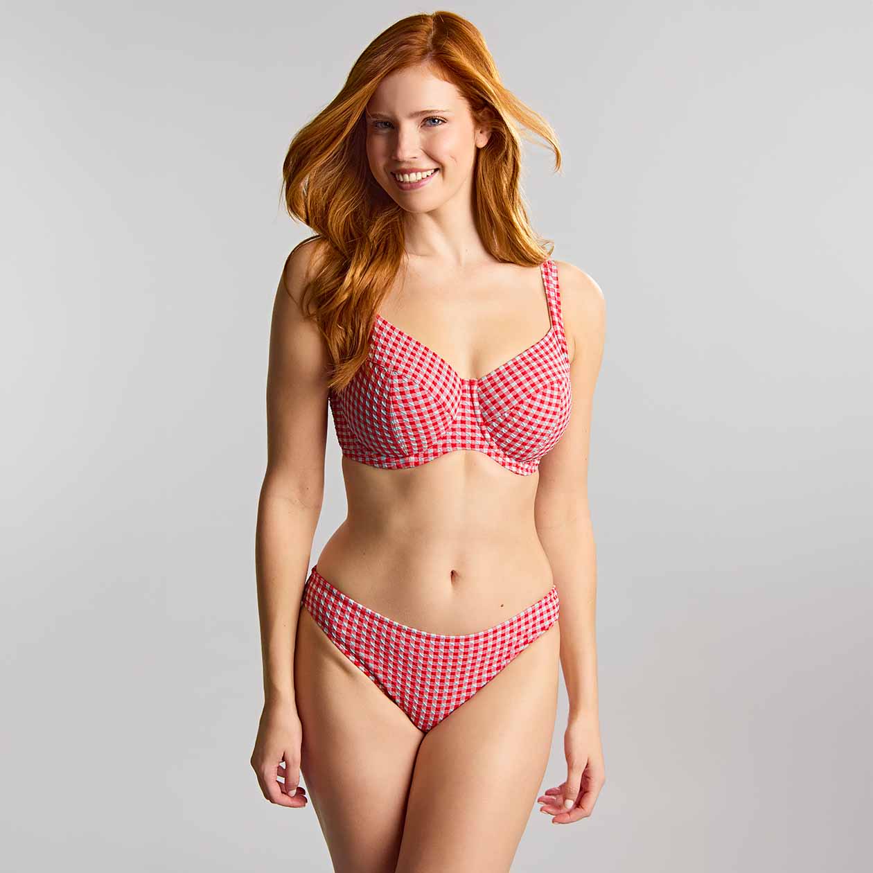 Head to the beach with the Panache Gingham Full Cup Bikini Top for a stylish look. This gorgeous full bikini top offers non-padded cups with underwired construction for excellent support and a flattering shape. You'll also love the beautiful gingham pattern, perfect for standing out from the crowd. An adjustable clip fastening and shoulder straps complete the top for an easy-to-adjust fit.