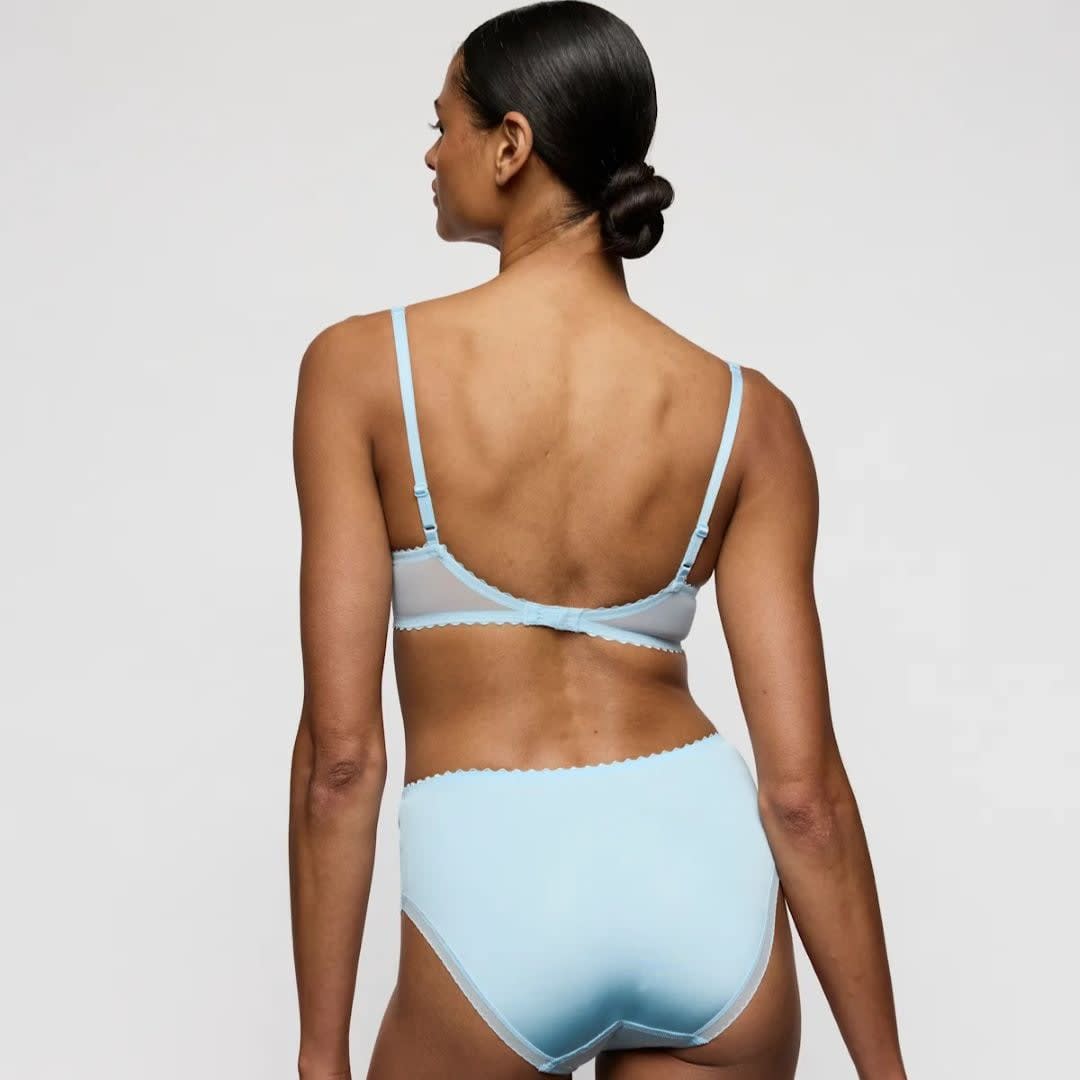 Experience luxurious comfort and elegance with the Jane range by Marie Jo. This high-waisted brief is designed for a sensual and smooth wear throughout the day. The clean finished main fabric feels light and smooth against your skin, making it perfect for wearing under any clothing. The high-rise waist provides complete coverage and confidence, while the full rear coverage ensures comfort and security. The legs are adorned with semi-sheer fabric and shimmery floral embroidery details, finished with scalloped edges for an extra touch of elegance. Perfect for those seeking comfort with a hint of sophistication. Pair with matching coordinates from the Jane range to complete the look.