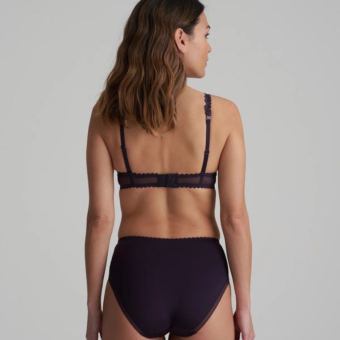 Get the confidence to wear any outfit with this Marie Jo Jane bra that will give you a smooth and flawless silhouette. The deep plunge neckline and the smooth padded cups make it perfect to wear with any low-cut or tight-fitting top. The intricate feminine embroidery on the cups and adjustable straps adds an extra touch of elegance. With underwired cups and a traditional hook and eye back closure, you can have both comfort and support. Complete the look by pairing it with other items from the Jane collection for a coordinated style.