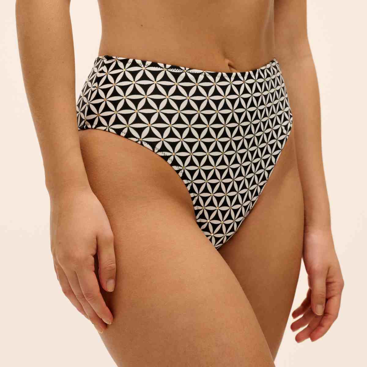 Featuring a retro-inspired monochrome print with gold highlights for a modern twist. Selected styles are finished with textured gold rings for a luxe, elevated feel