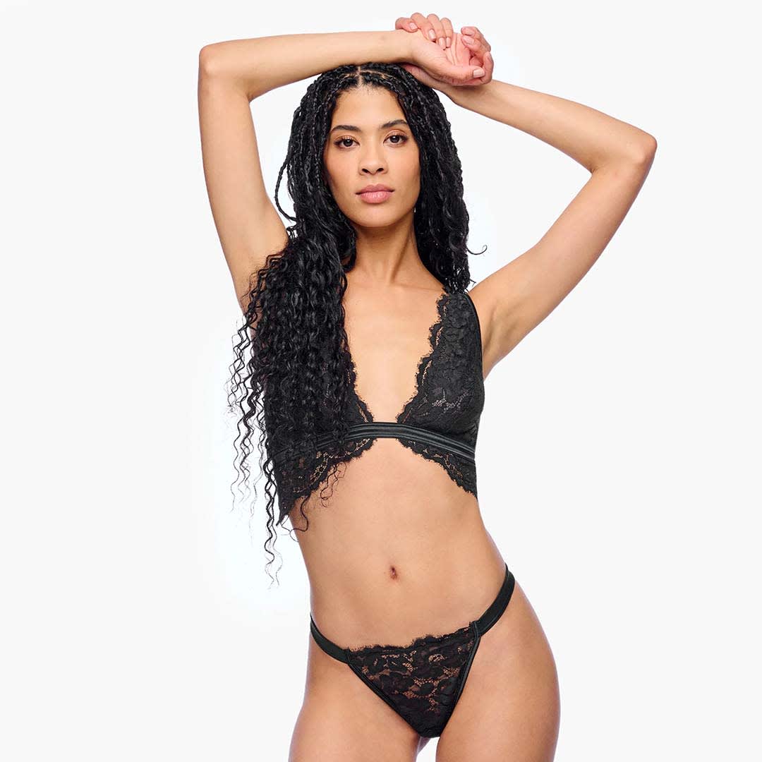 A low-rise Magnolia String Thong is designed for minimal coverage and maximum allure. It features a strappy satin waistband that adds a sleek, elegant touch, with no rear coverage for a smooth, barely-there feel. Finished with a cotton-lined gusset for comfort. Care: Hand wash only. Do not tumble dry.