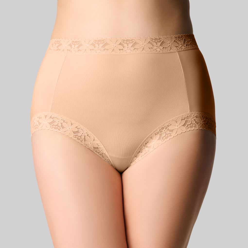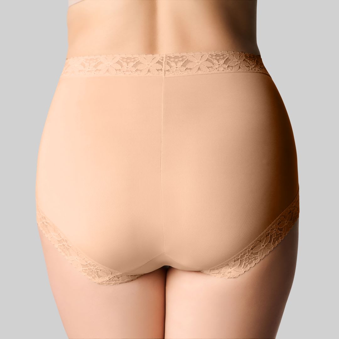 Our Full Brief is a full coverage knicker. It sits high over the waist. It is made from a stretchy micro touch fabric which moulds to your shape without restriction. Gently hugs the body. Support without control. It has full seat coverage with cotton gusset.