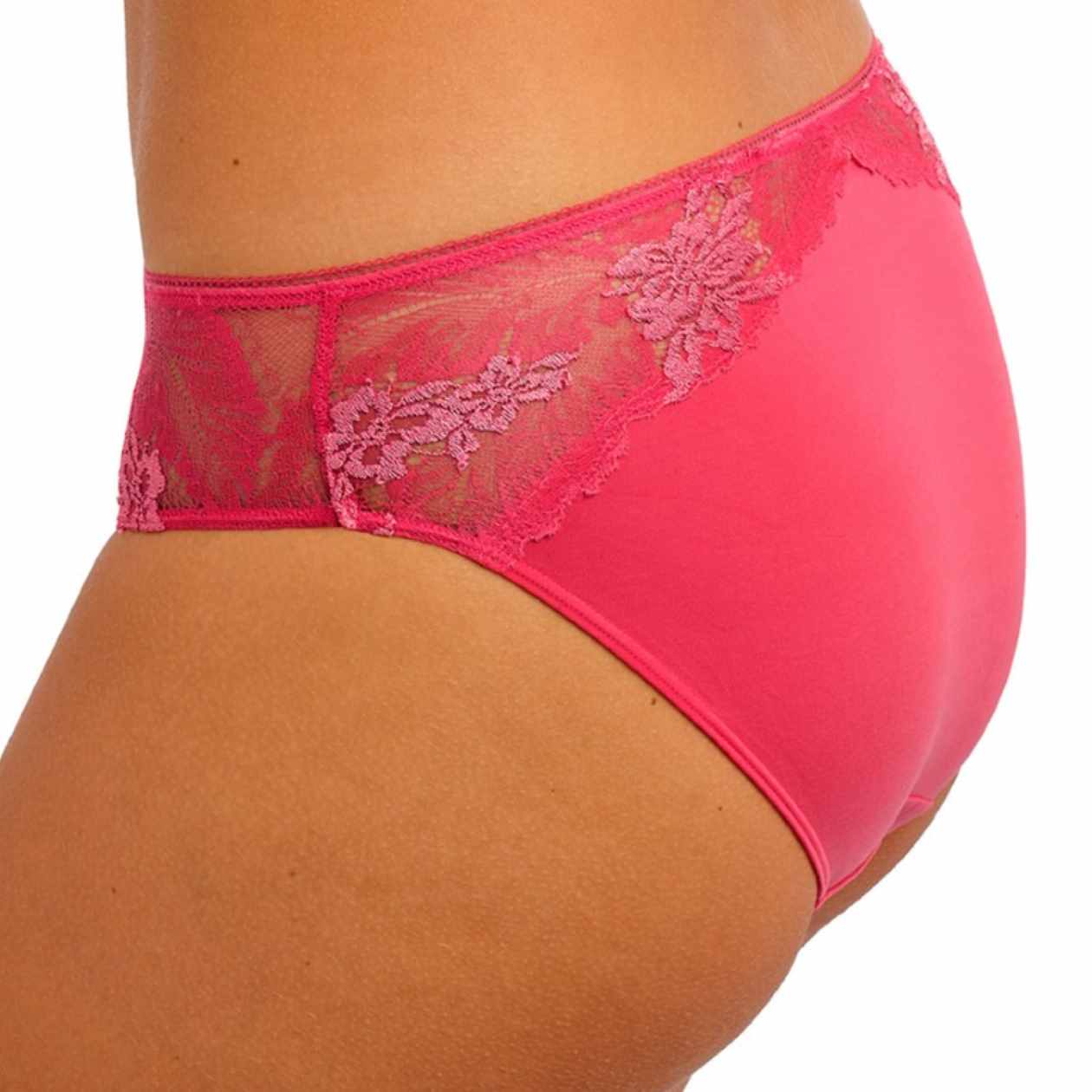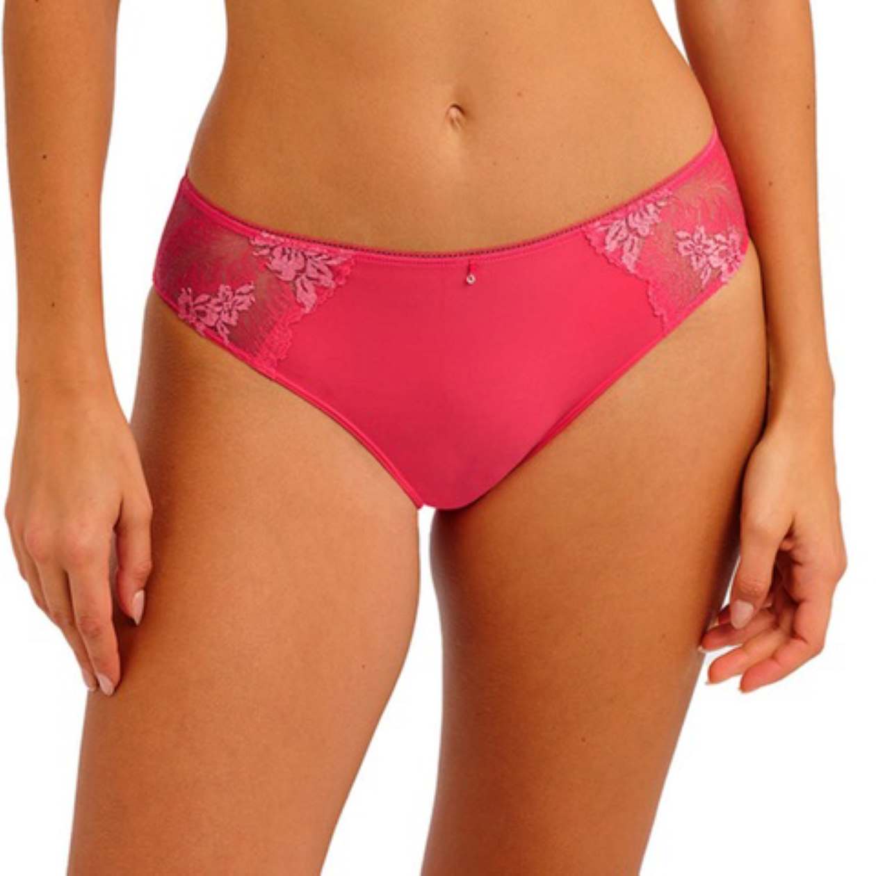 Experience unparalleled comfort in this Most Divine mid-rise brief, featuring stretch lace panels adorned with delicate viscose yarn flower detailing at the sides, both front and back. Crafted with soft stretch microfibre for ease of wear, this design offers medium back coverage, a narrow delicate mesh waist elastic, and concealed leg elastics for a refined finish, complete with a subtle diamanté charm at the center front waist.