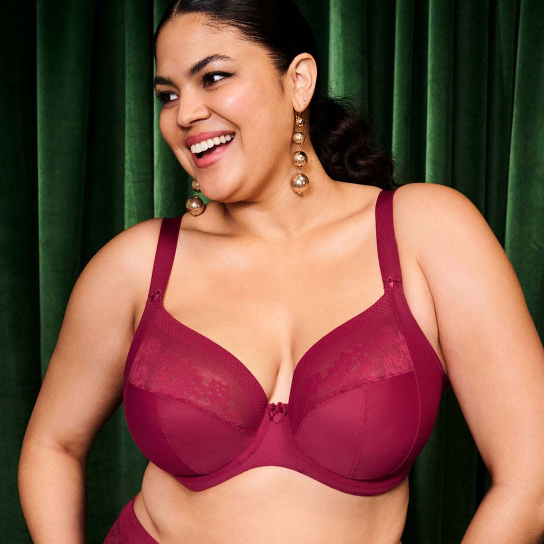 Based on Lucie EL4490, this bra has a Powerful stretch lace is soft, flat, smooth and matt, with a contemporary design, for a fresh modern look. Lace top cup has no neck edge elastic, for a smooth finish, rounded shape and ease of fit. Double layer wings with encased elastics create soft smooth edges, for comfort with minimal rolling.