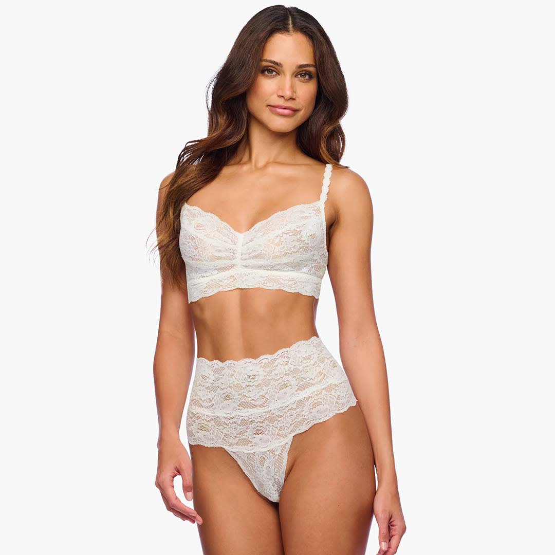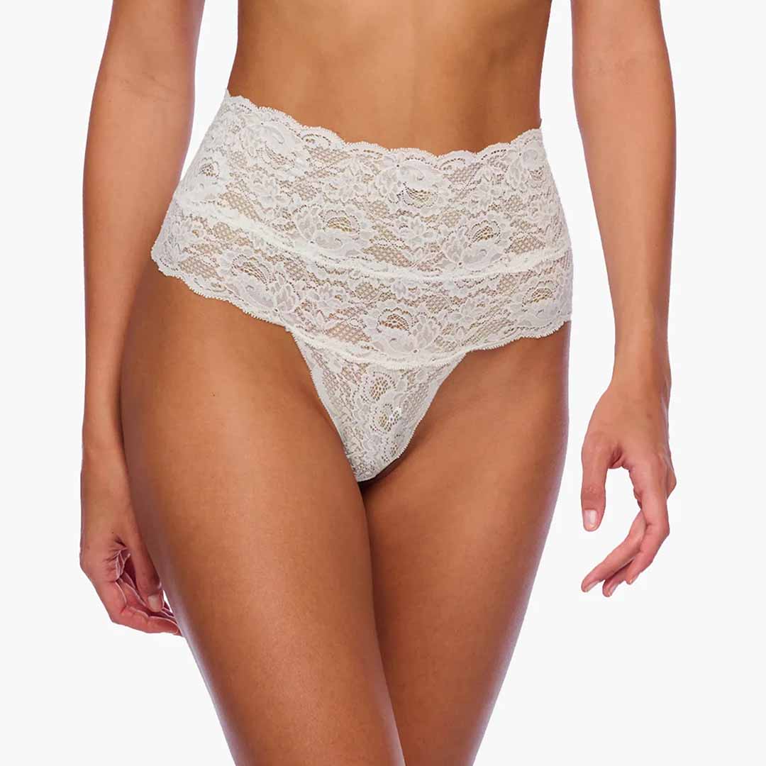Never Say Never High Waist Thong is soft with stretch scalloped lace. It is great for extra tummy coverage.