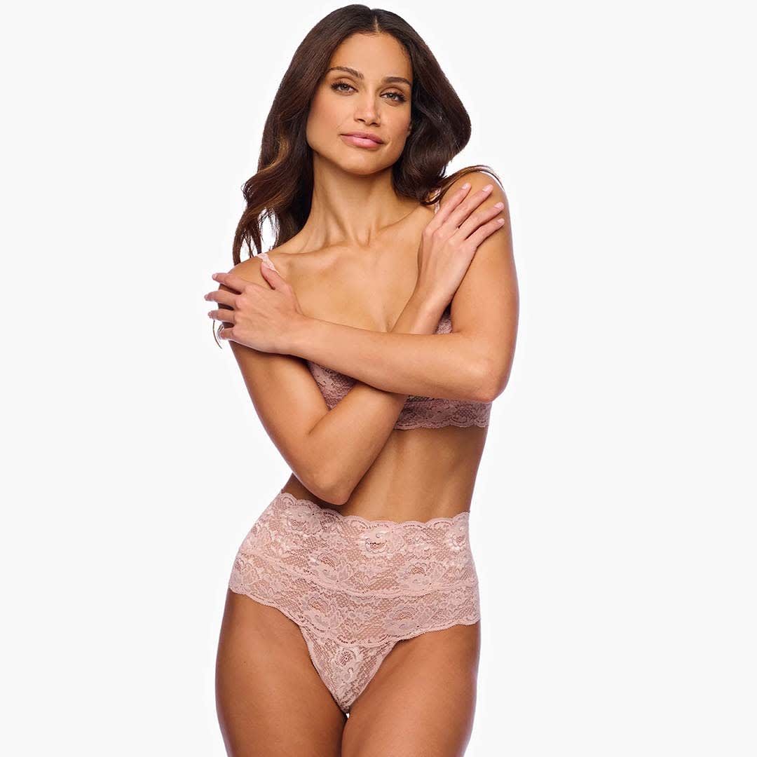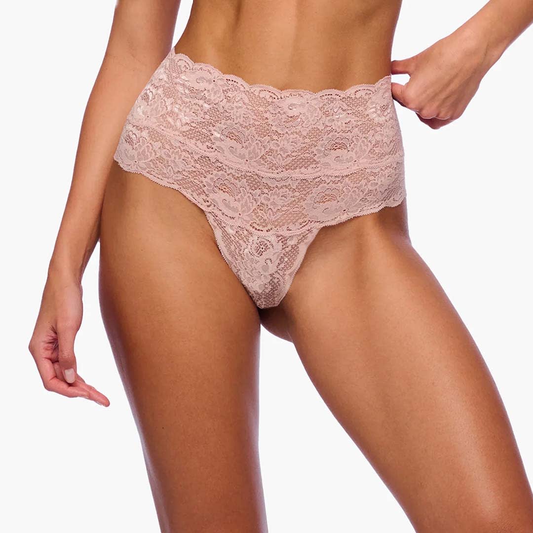 Never Say Never High Waist Thong is soft with stretch scalloped lace. It is great for extra tummy coverage.