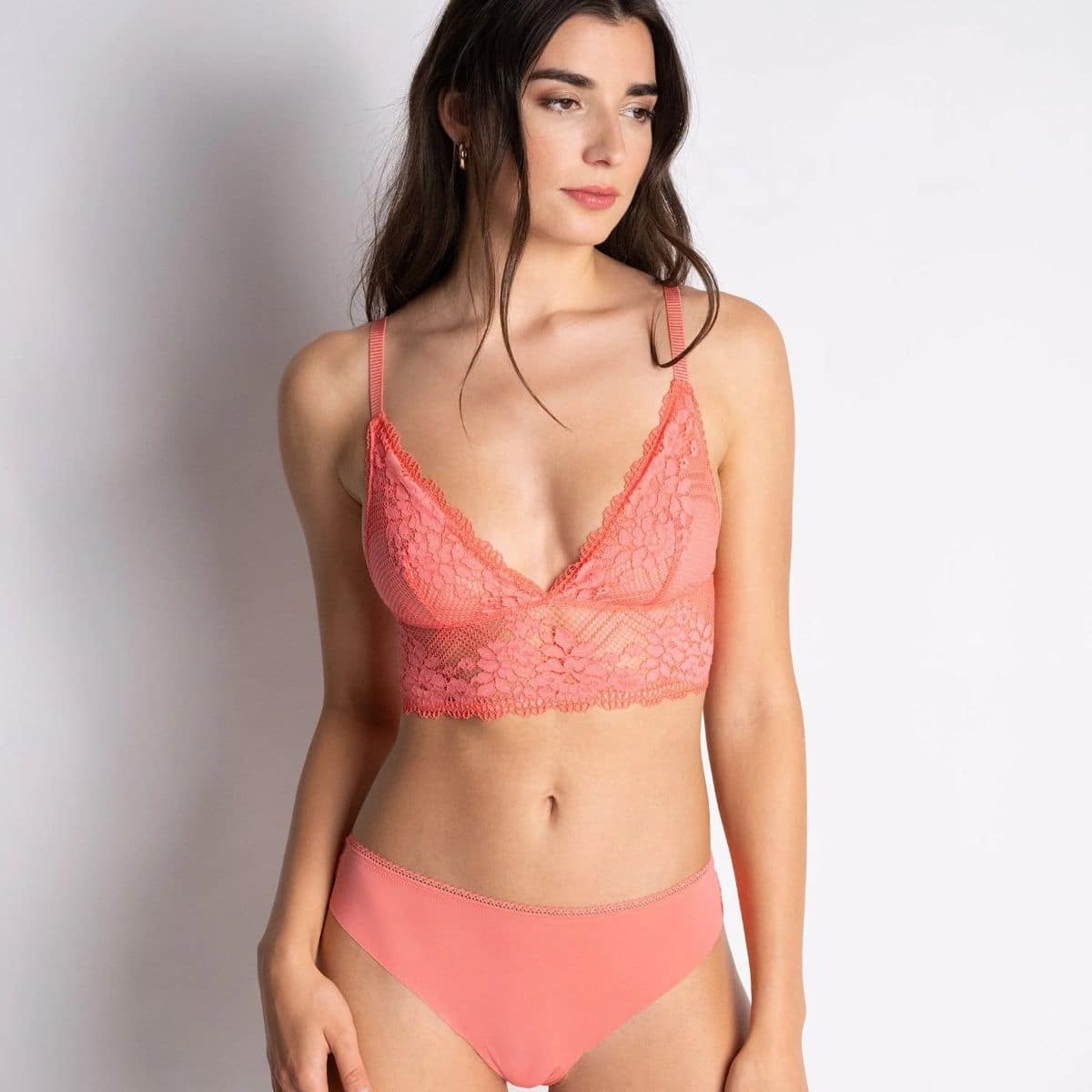 A triangle without underwire all in lace A floral lace that lets the shapes show through. The straps are adjustable to adjust according to needs.