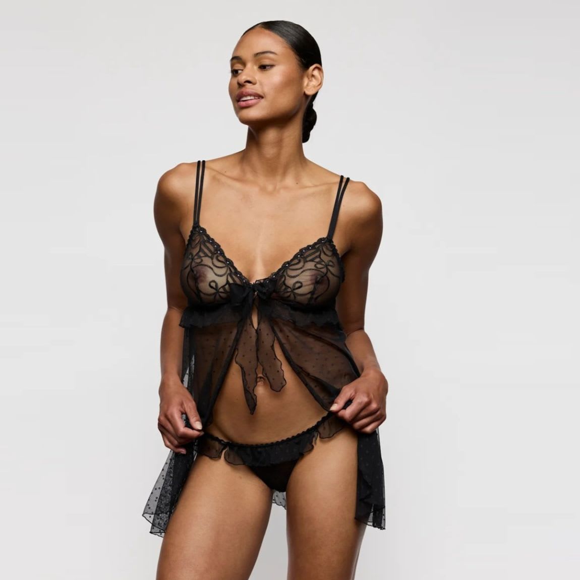 Flirty vibes, delicate tulle and a comfy fit. Sexy boudoir look .