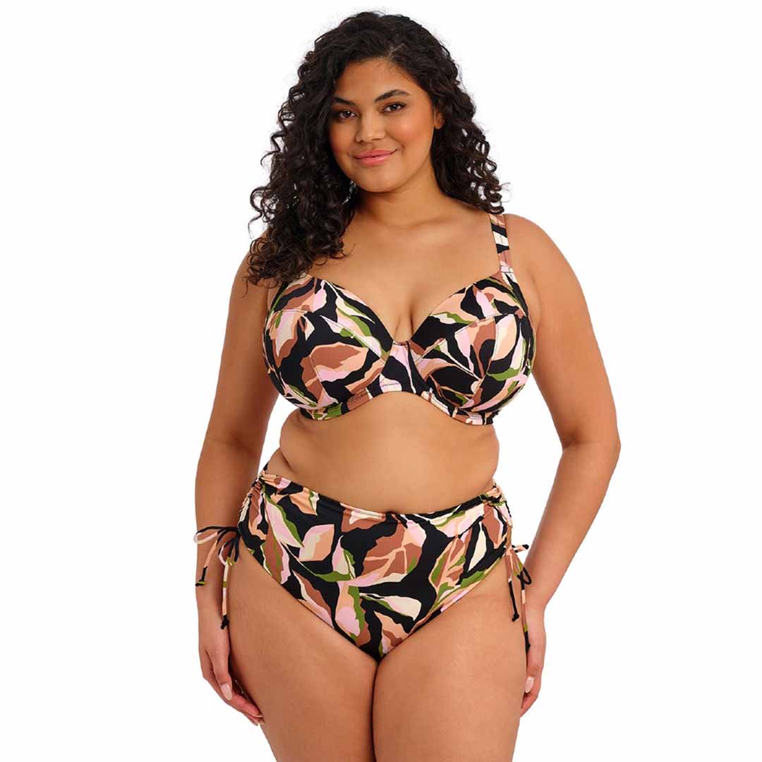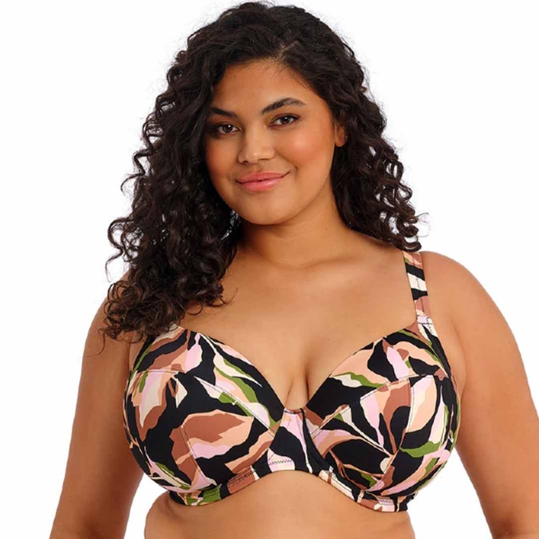 Designed with a concealed elastic neckline for ease of fit, the fully lined Ocean Avenue Plunge Bikini Top offers light yet supportive structure for a bikini look with the fit of an Elomi Lingerie bra, featuring stretch printed fabric with LYCRA® XTRA LIFE™ elastane through the cups, straps and back, a powernet-lined back for extra support, and adjustable shoulder straps for a customised fit.
