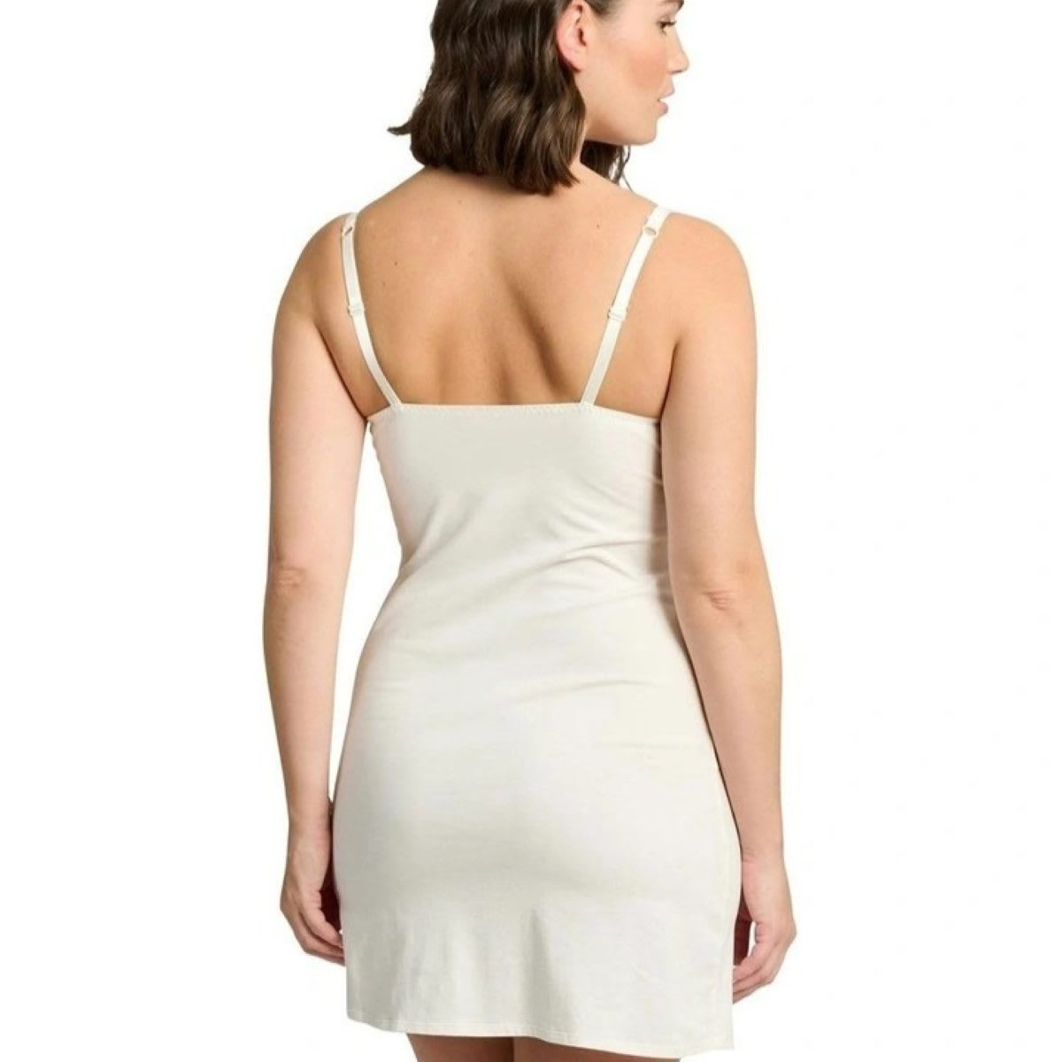 Breastfeeding nightie with drop-down cups. Organic cotton fabric for incredible softness. Adjustable, foam-padded shoulder straps with cotton lining. Pretty lace trims
