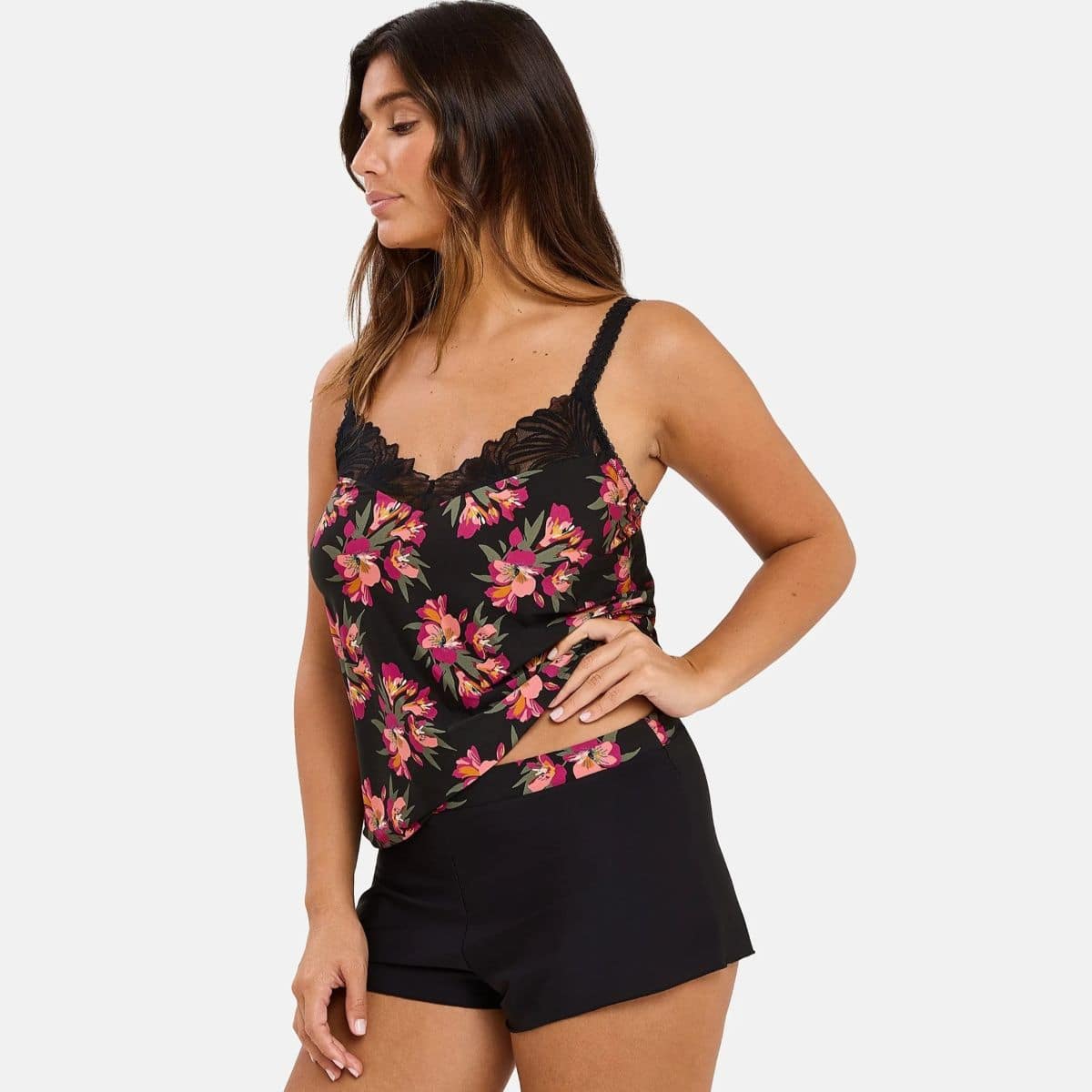 Discover the Oriane line, the perfect fusion of delicate lace and printed microfiber with a floral pattern.Soft, lightweight, and comfortable microfiber.Openwork and feminine lace at the neckline for a glamorous touch.