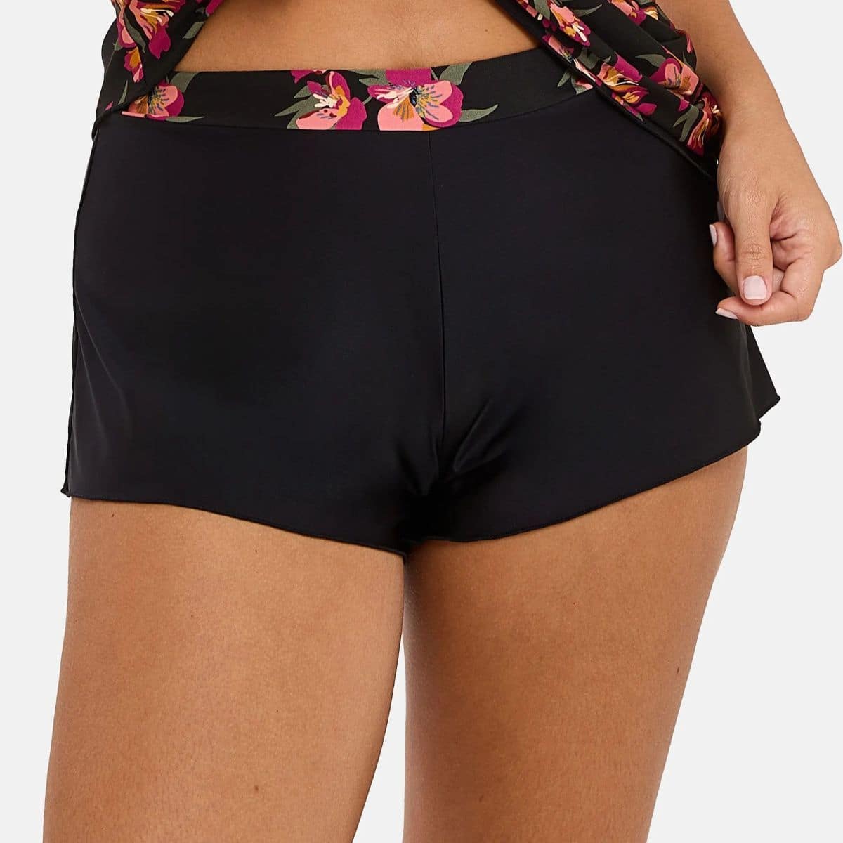 Soft, lightweight, and comfortable microfiber with a floral pattern. Large flower print on the waistband.