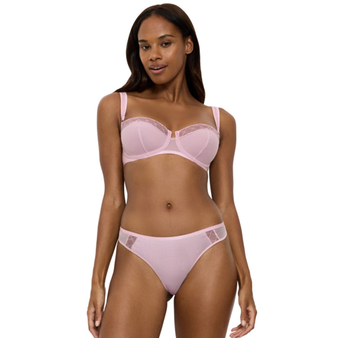 The Palina Cosmic Heartbeat Bra has a Light mesh optics combined with generous geometric embroidery create lingerie that balances sophisticated sensuality with effortlessly stylish everyday wear. This wired, non-padded bra features a beautifully shaped neckline, tailored cups with side support for lift even in larger sizes, a curved Ergoline wire for comfort, cushioned signature straps, a flattering scooped back, and premium materials made in Europe.