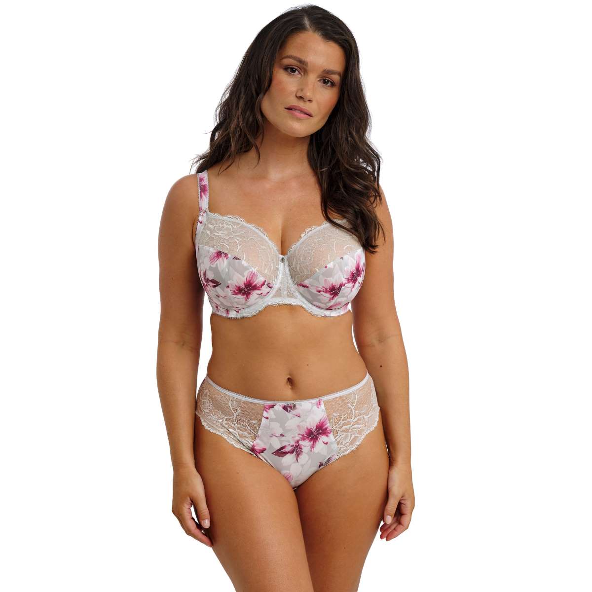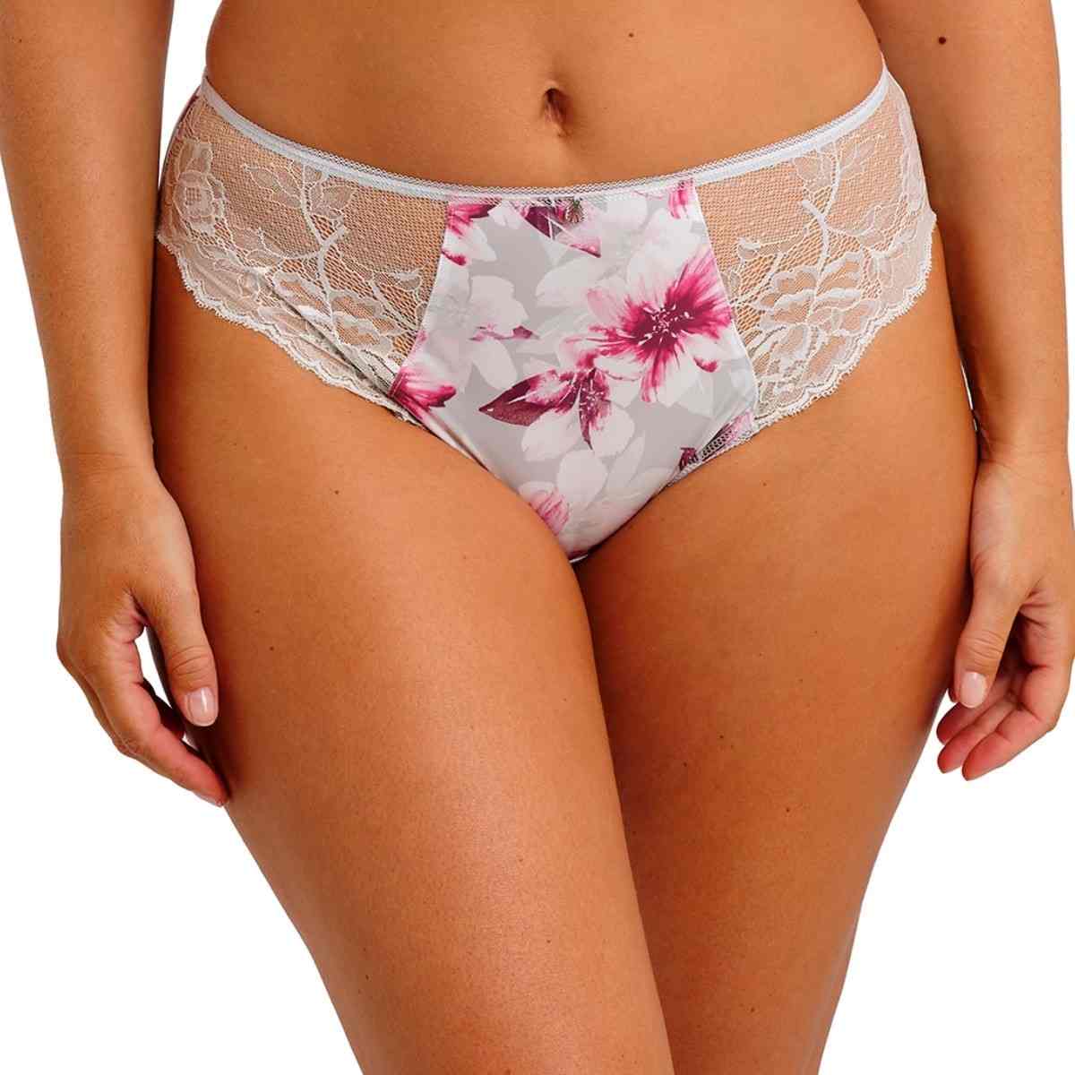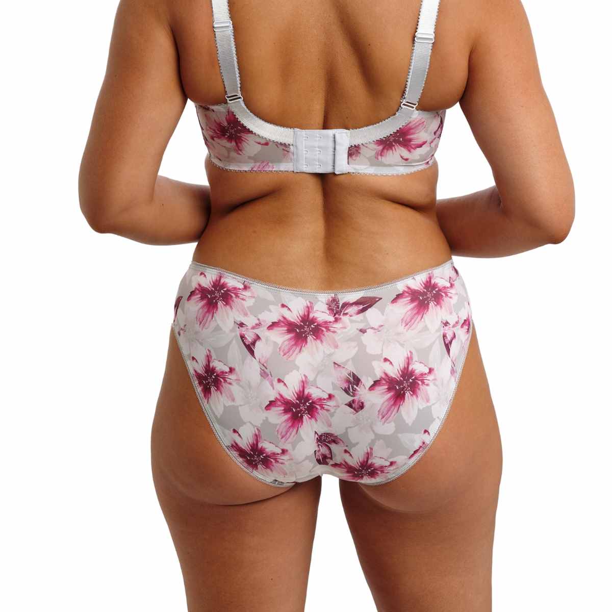 Pippa Brief has stretch lace which adorns front leg and back with soft handle printed fabric in front and delicate bow detail at center front.