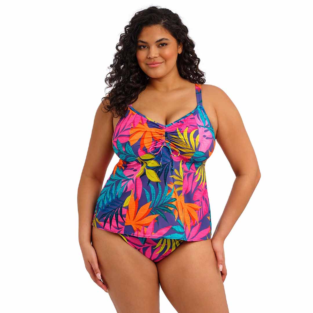The bust area of Porto Rafti Non Wired Moulded Tankini Top is lined with a light seamless foam cup for a smooth, rounded shape and no show-through, supported by an upper back powernet lining, a centre-front drawstring for adjustable neckline coverage, a gently flared silhouette, lightweight LYCRA® XTRA LIFE™ fabric for durability, and adjustable shoulder straps for a customised fit.