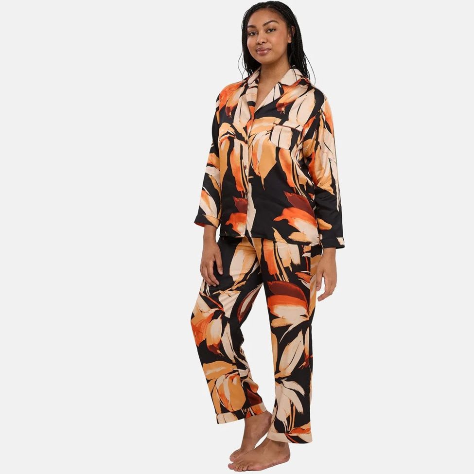 Adopt a trendy and feminine style with the Pure Chic line and its satin effect that is very pleasant to wear daily. • Trendy floral print • Ultra soft and comfortable viscose satin • V-neck collar • Side pocket at the front • Contrasting covered buttons