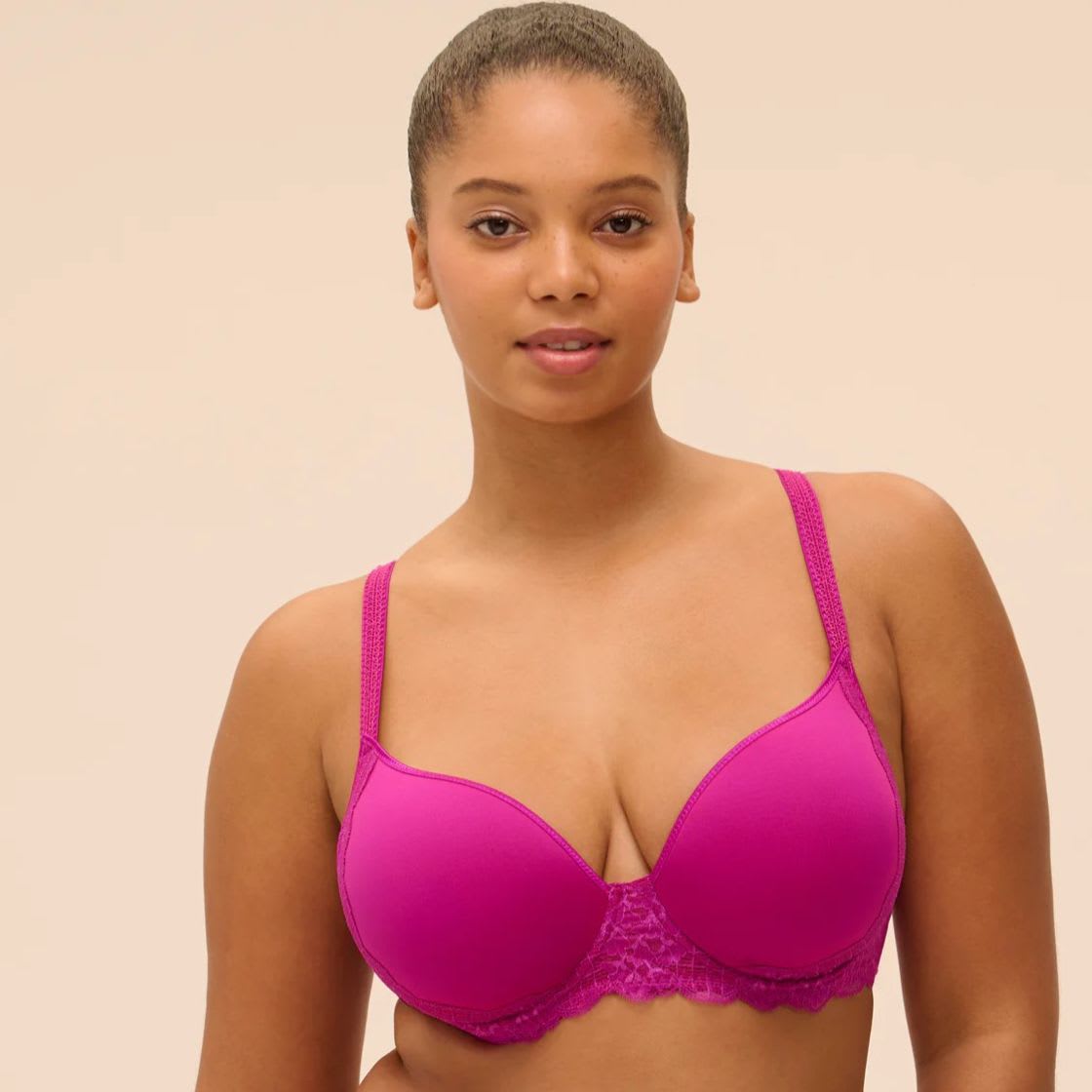 The Reve 3D Plunge Contour Bra is a full-coverage bra made from a soft material that’s breathable and comfortable. Spacer cups with underwire create a rounded shape and natural-looking cleavage, while Japanese cherry blossoms and lace half-moons at the side of the cups give this lingerie an elegant touch. Adjustable straps and a plunging neckline make it ideal and flattering for every day.