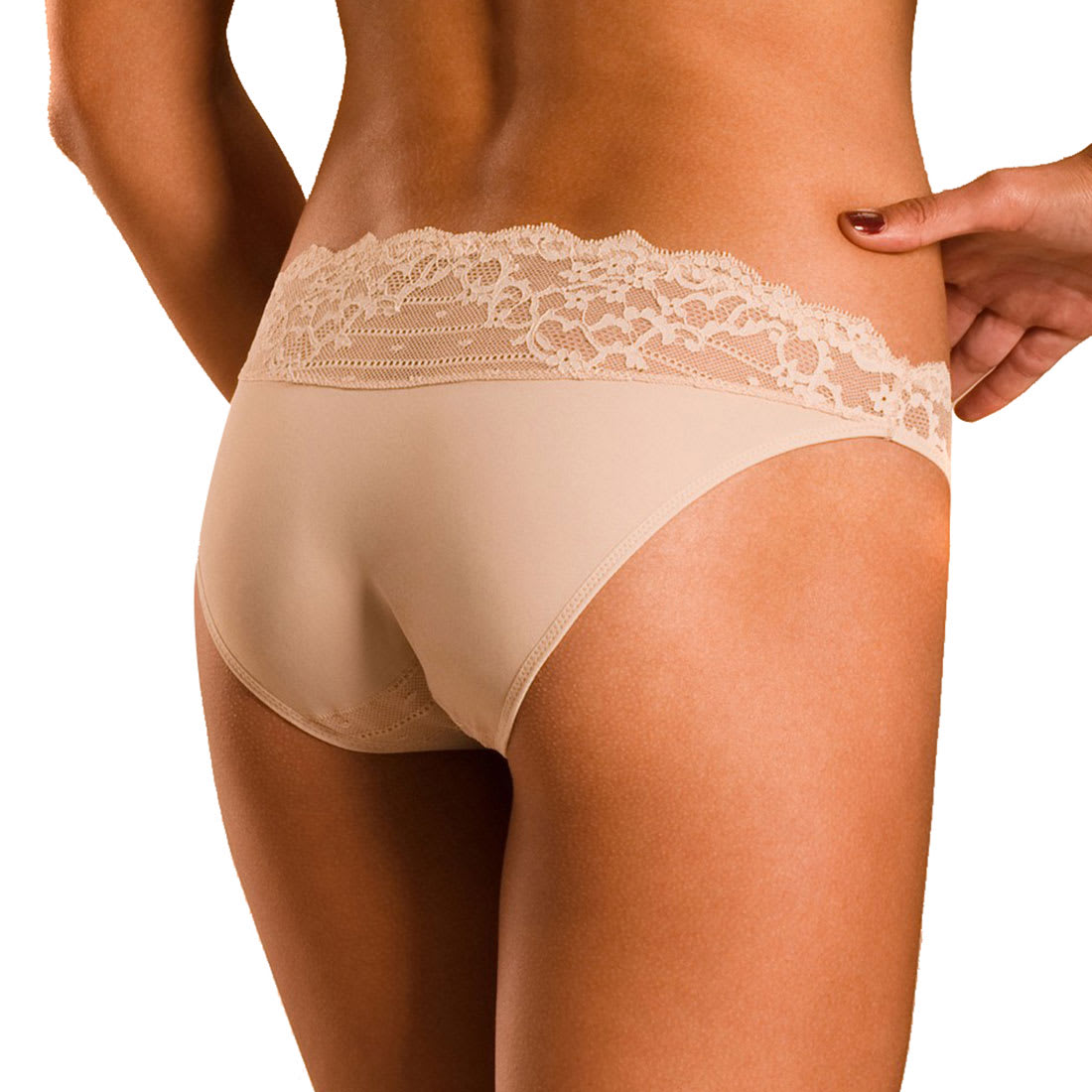 Sexy everyday Brazilian bikini Brief with Medium-rise styling makes this style easy to wear underneath anything.Full back coverage prevents you from showing panty lines.Front is made of stretch floral lace that is beautiful and comfortable.Back is an opaque stretch knit that keeps you comfortable all day.Top back panel is sheer lace for a playfully seductive feel.Center front bow detail gives you a subtle charm.