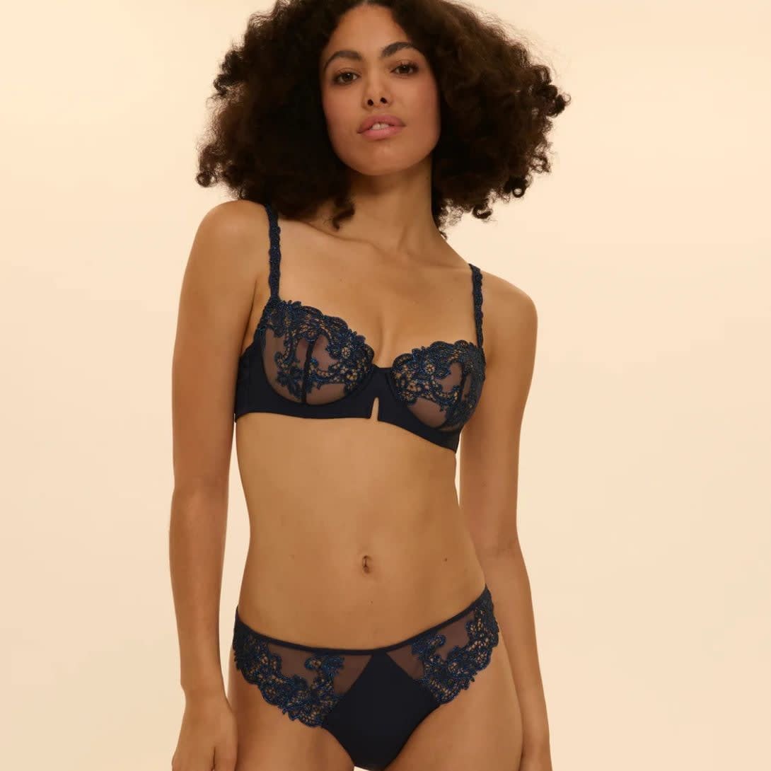 Featuring a beautifully crafted Guipure lace that harks back from the days of old haute couture patterning. This style is eminently wearable and seamless under clothing.