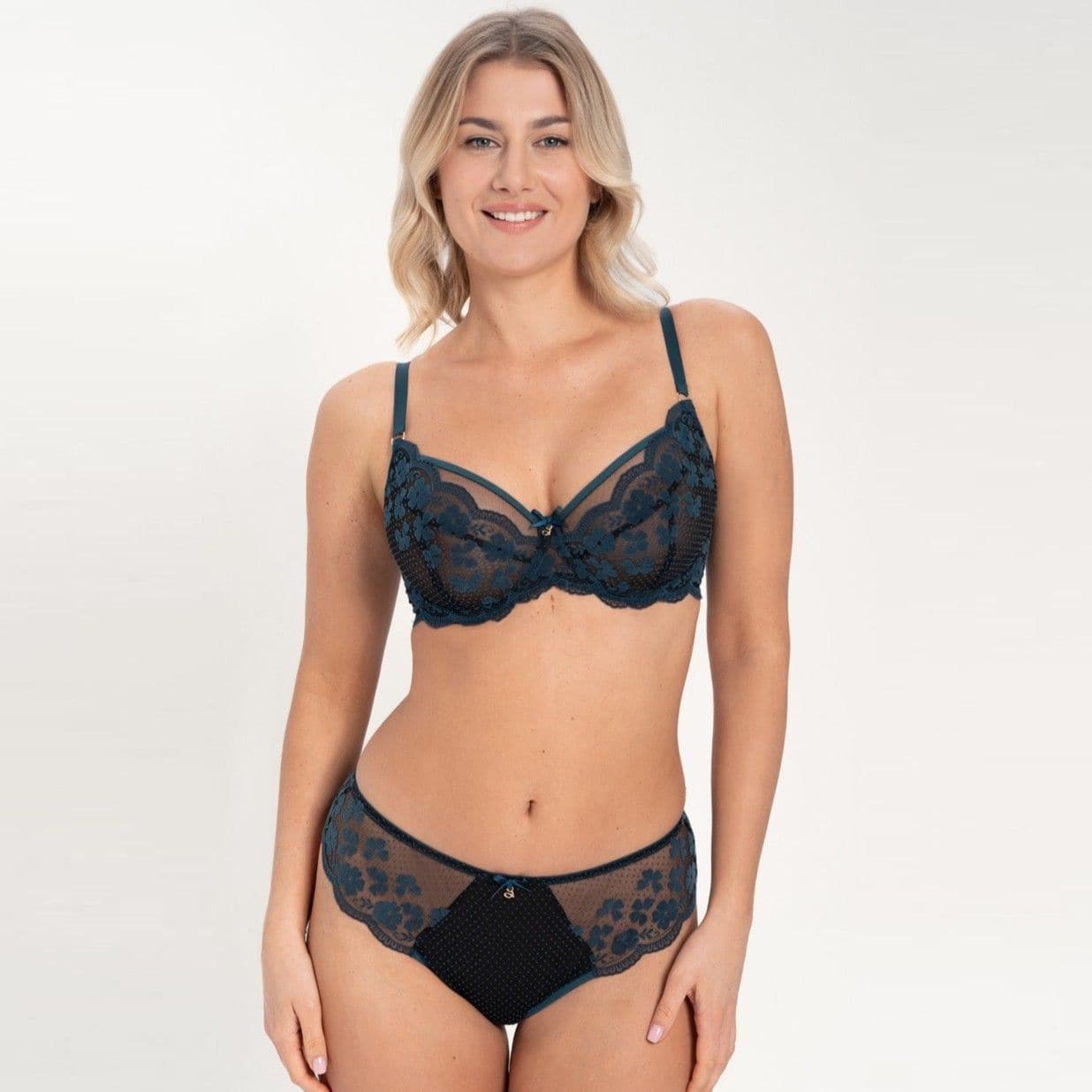 Feel lightness in lingerie that subtly wraps your body. Subtly transparent cups. Adjustable, non-removable shoulder straps.