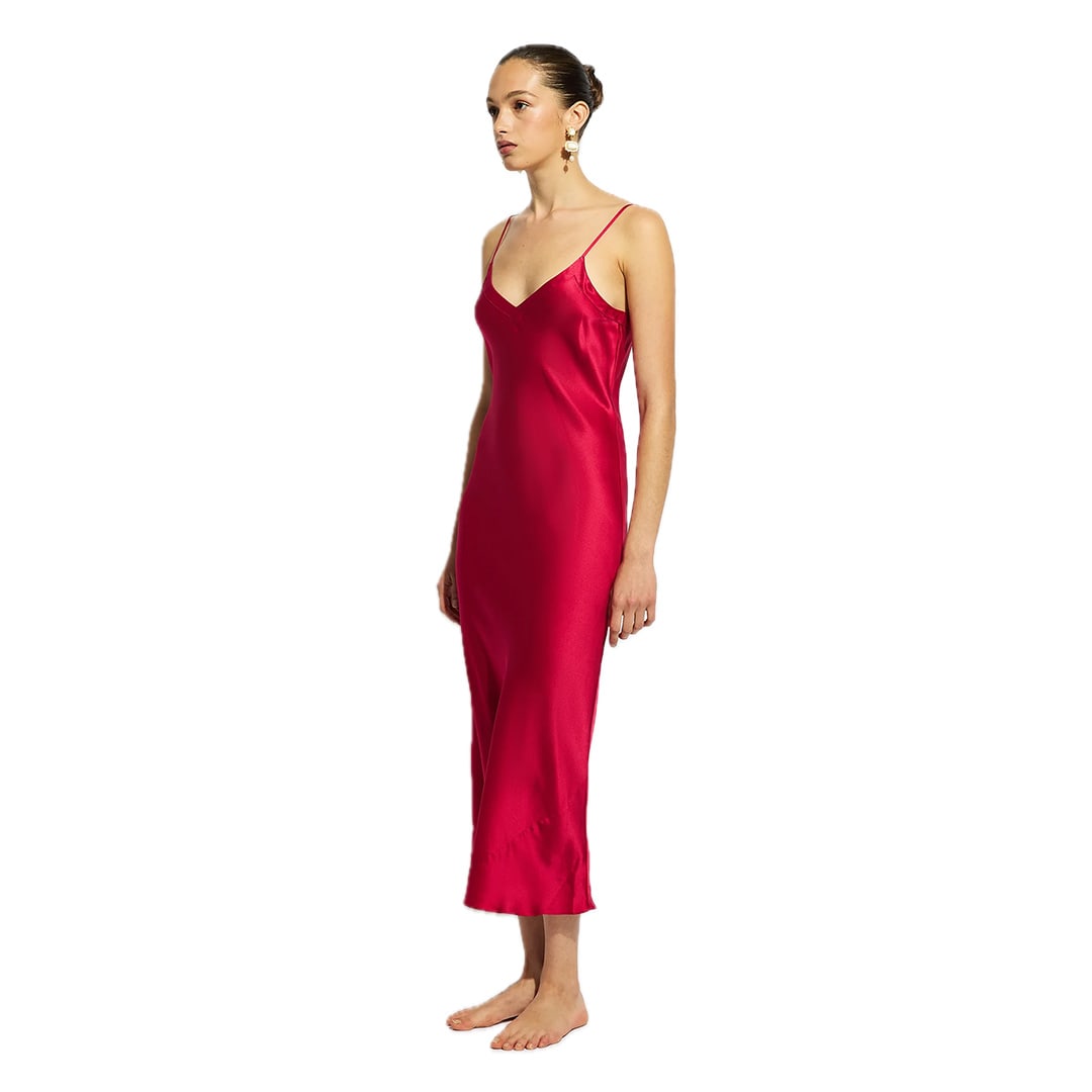 The Silk Long Nite V Neck Slip is a timeless midi dress that is ideal for layering under sheer outfits, sleepwear, or wearing alone. Bias-cut in 100% silk that falls to create a beautiful silhouette. Spaghetti straps from the same silk are adjustable for a perfect fit. A style that effortlessly transitions between sleep and street.