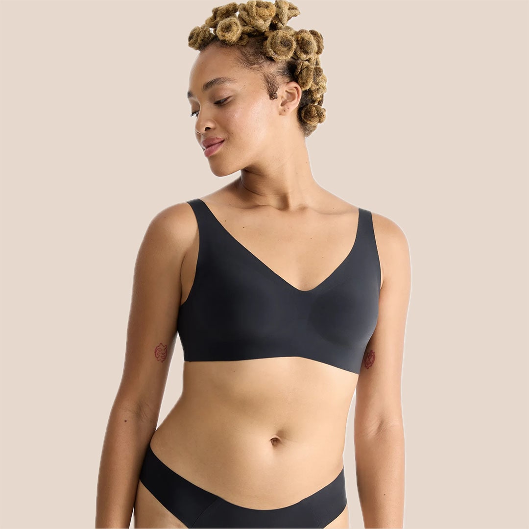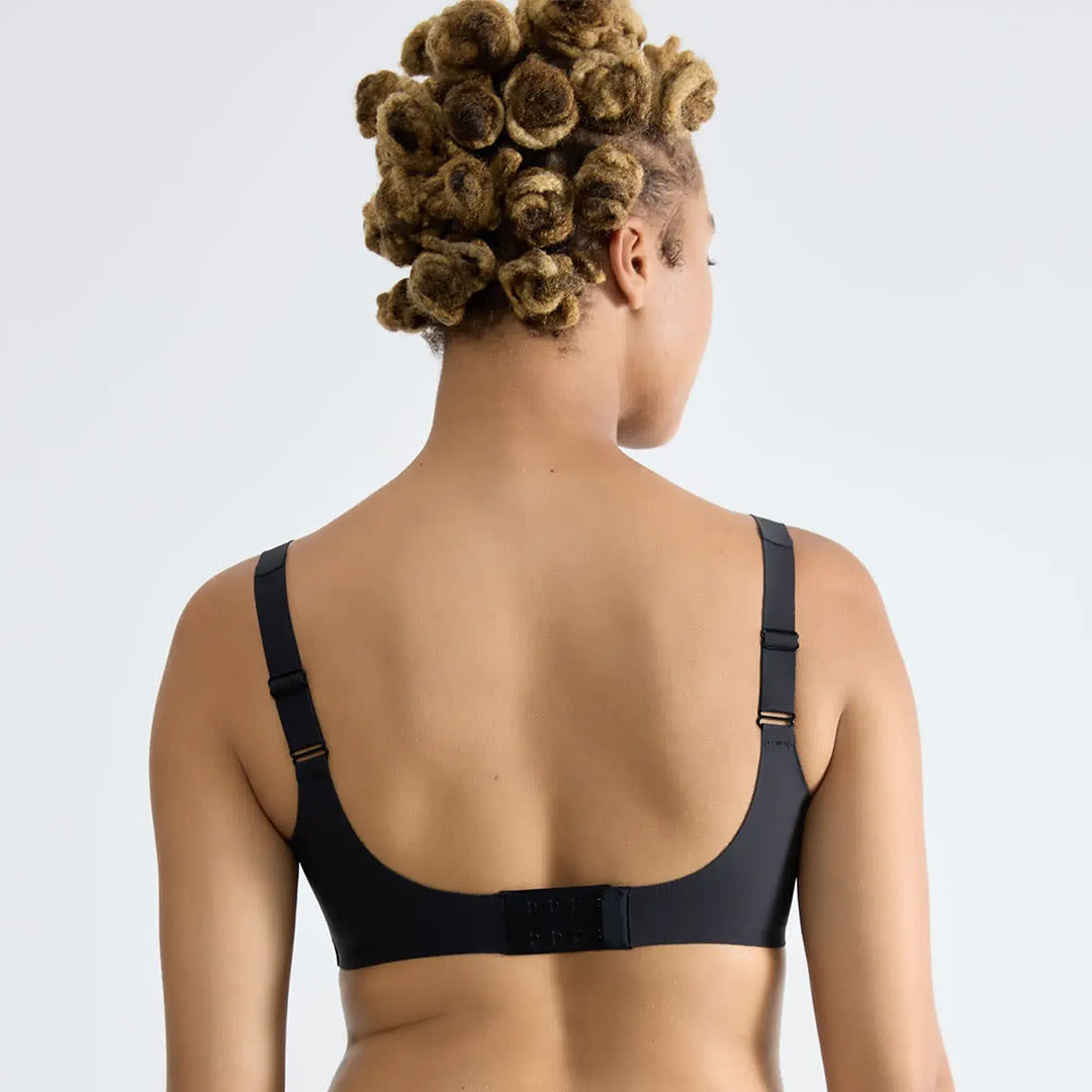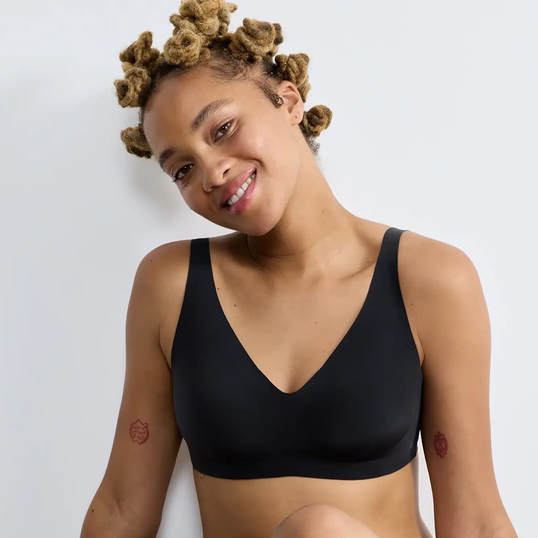 A Sloggi ZERO Feel 2.0 Soft Bra with removable breathable cookies, firm support, and seamless 360° stretch recycled fabric featuring moisture-wicking Activated Silk™ technology for a smooth, invisible second-skin feel.