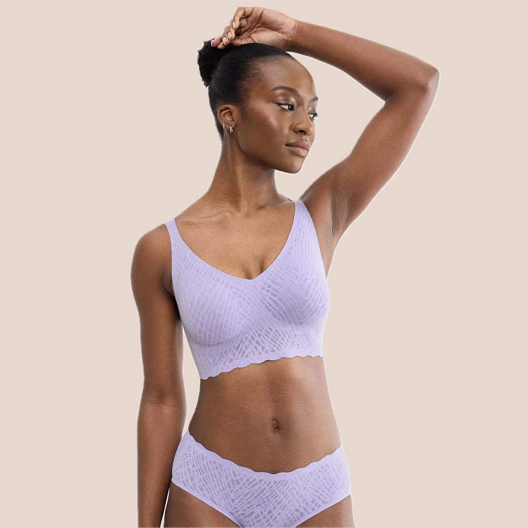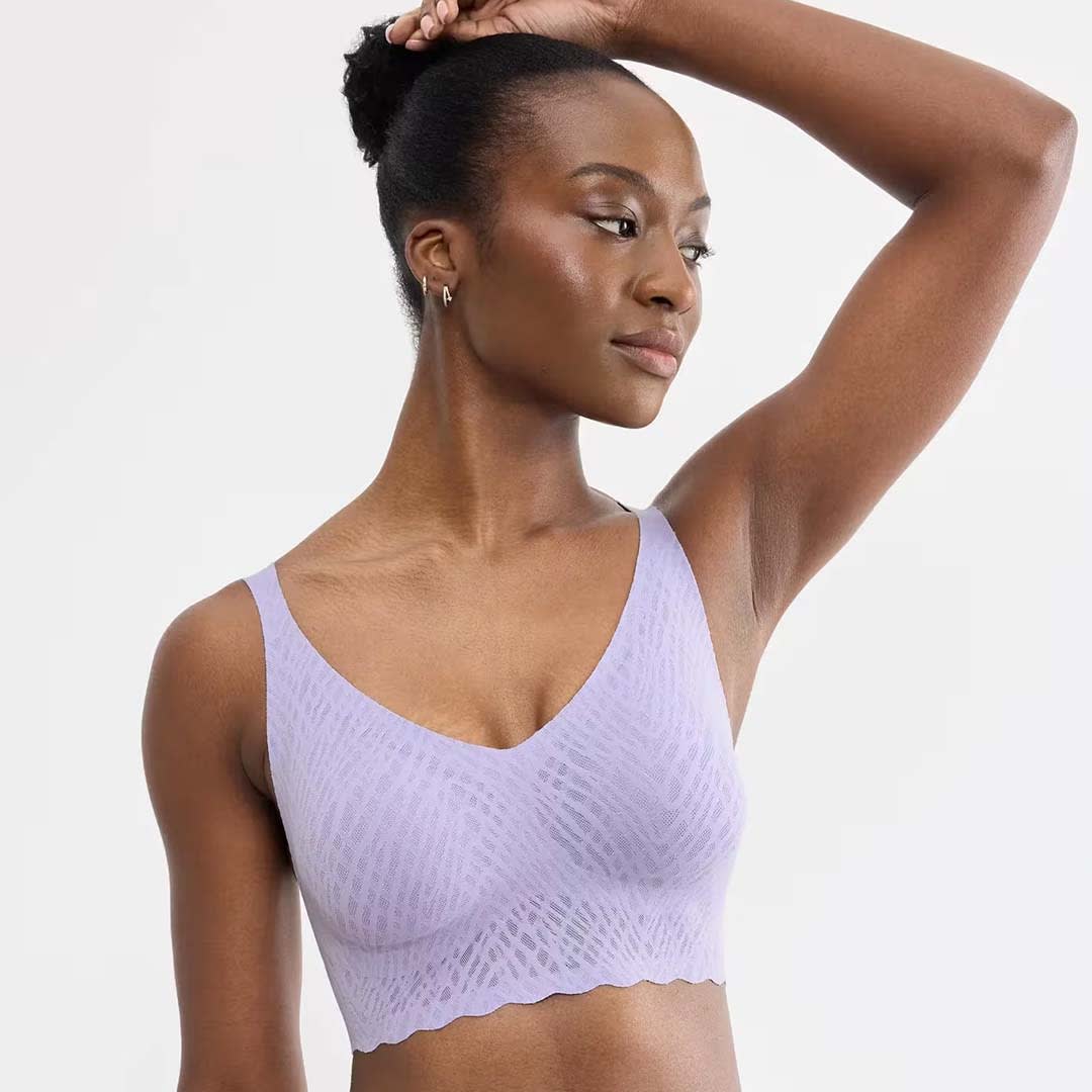 Sloggi ZERO Feel Bliss Bralette: A wire-free, seamless V-neck bralette made with soft 360° stretch lace that offers a lightweight, second-skin feel with a smooth, invisible finish under clothing.